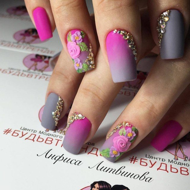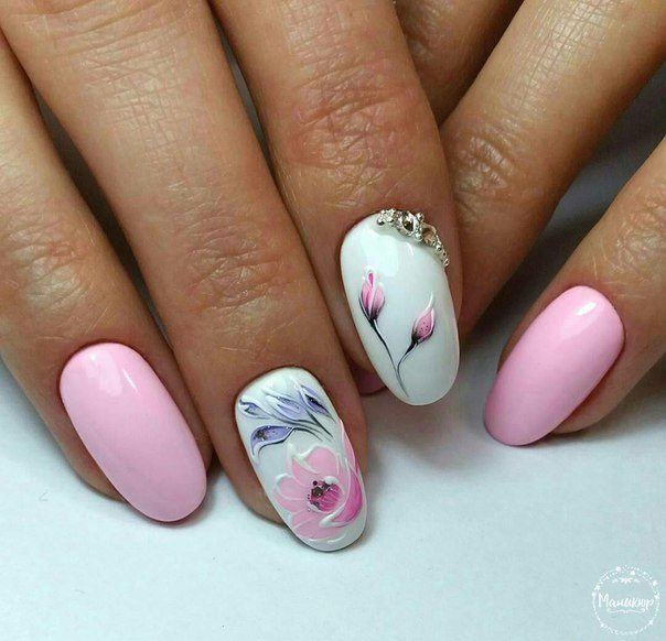 Aujourd'hui, il existe un grand nombre d'options pour la conception florale sur les ongles. Une variété de couleurs vous permet d'expérimenter. En adoptant une approche créative, les maîtres de manucure créent des arrangements floraux à part entière qui soulignent le romantisme et l'individualité de la nature féminine. N'importe laquelle, même la courbure la plus simple en matière de fleurs est capable d'allonger visuellement les ongles coupés à la racine. Puisque la couleur tendance de 2026 est le lilas, les fleurs faites dans ces nuances seront pertinentes. Les tons violets à la mode sont parfaitement combinés avec le rose, le corail et le vert, car les variations de fleurs en manucure n'ont pas de frontières. Mais pourquoi, en 2026, ne pas se concentrer sur le naturel, prendre un vernis nude comme base? Et seulement alors appliquez le dessin floral original. La sculpture de fleurs sur les ongles est toujours en demande, car rien n'est meilleur et plus populaire pour une célébration de mariage qu'une manucure française à fleurs blanches en pâte polymère. Le thème floral de la manucure à la mode et élégante 2026 est entièrement décrit dans les photos présentées ci-dessous.