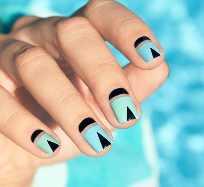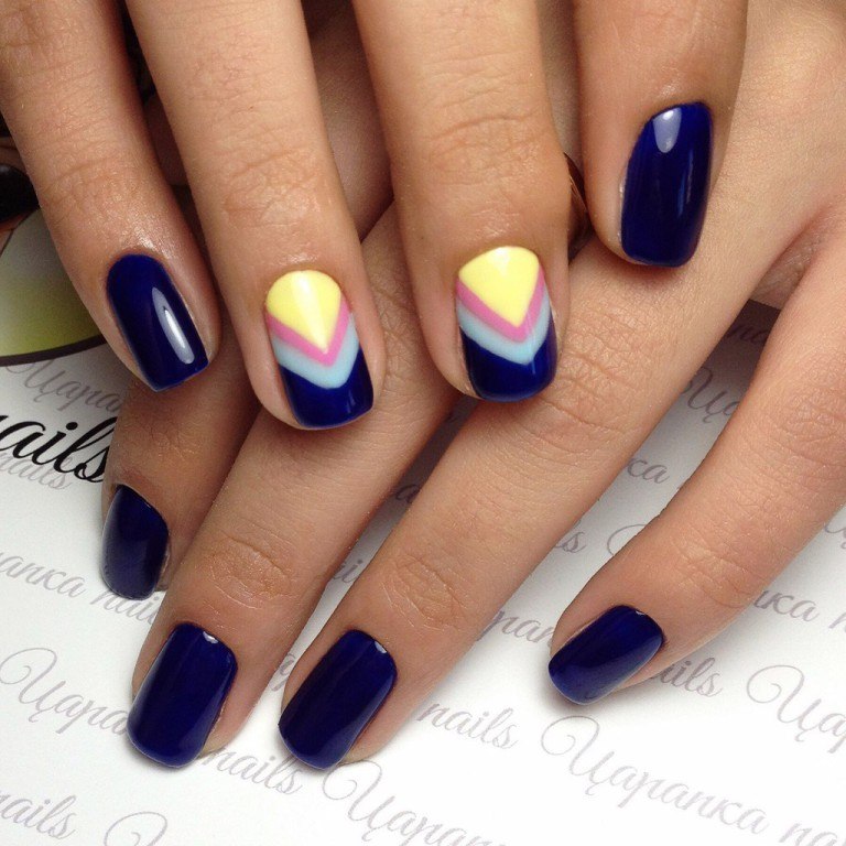 Une femme moderne ne peut plus s’imaginer sans des ongles soignés et élégants avec une manucure super cool de la dernière mode. Les dessins populaires peuvent non seulement donner à la plume féminine un aspect soigné, mais aussi refléter l'humeur de la propriétaire elle-même. Rien ne diversifie la version classique de la manucure comme les ornements originaux. Les mathématiques et la géométrie sont omniprésentes dans nos vies, alors pourquoi ne pas tenter votre chance et transférer les lignes géométriques sur la plaque à clous? La manucure convient aux ongles courts de forme rectangulaire. Les variations géométriques sont faciles à faire par elles-mêmes, l’essentiel est de penser à l’avance au sens, à la longueur et à la couleur des rayons et des segments. En tant qu'accent, vous pouvez mettre en évidence l'écart entre les lignes avec un autre vernis ou mettre en valeur avec des brillants. Une manucure géométrique efficace se présente sous forme de teintes accrocheuses et colorées. Si vous effectuez un dessin sur les ongles aux couleurs pastel, cette manucure fonctionnera bien pour un look quotidien. La fantaisie des motifs géométriques ne se limite pas à rien. C’est exactement ce que prouvent les exemples de photo illustrant les variations géométriques du nail art moderne.