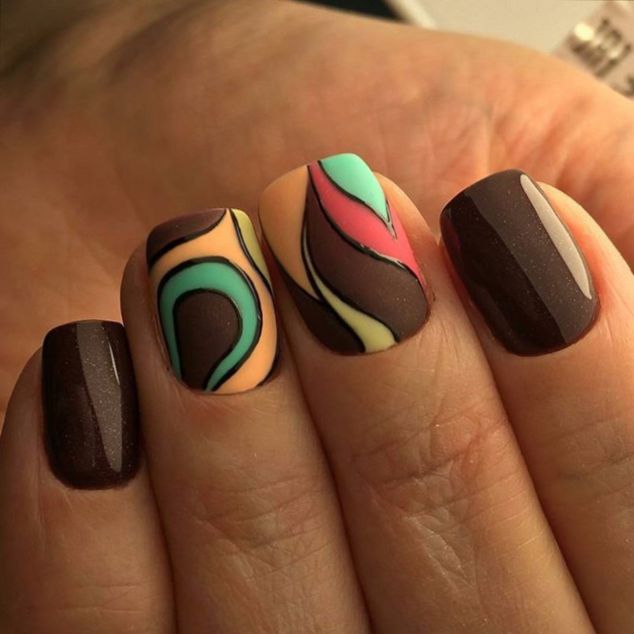Abstraction incompréhensible sur les ongles est la tendance de 2026. La pertinence d'une telle manucure n'est pas perdue au fil des ans et se situe au même niveau que le design des ongles rouges. De nombreux professionnels du nail art appliquent avec désinvolture diverses couleurs verticalement et horizontalement, puis effectuent toutes sortes de tâches. L'effet de l'abstraction est une option gagnante pour n'importe quelle image. Dans une manucure aussi soignée, vous pouvez utiliser en toute sécurité toutes les nuances de couleurs présentes dans votre garde-robe quotidienne de base, vous évitant ainsi de changer en permanence la couleur du vernis à ongles placé sous vos vêtements. Il arrive un moment où il est temps de fixer nos yeux avec admiration et bonne envie. Grâce au choix des motifs d'abstraction, une femme attirera facilement l'attention, de gré ou de force. Soyez prêt à partager les numéros de téléphone de votre maître manucure! Une manucure avec une abstraction sur la photo confirme son droit au titre de manucure tendance 2026.