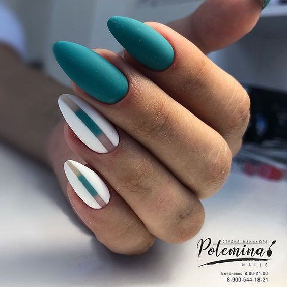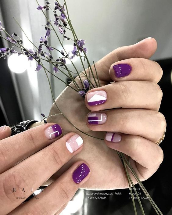 La première place sur le podium des manucures printanières les plus en vogue est occupée par une manucure style minimal + motif géométrique, ainsi que par une combinaison de plusieurs ou deux couleurs contrastées. Ajouter un peu d'argent ou d'or à la conception ne fera pas mal. Dans la conception du dessin sur les ongles, vous pouvez utiliser des motifs sous forme de lignes, de points ou de différentes formes géométriques.