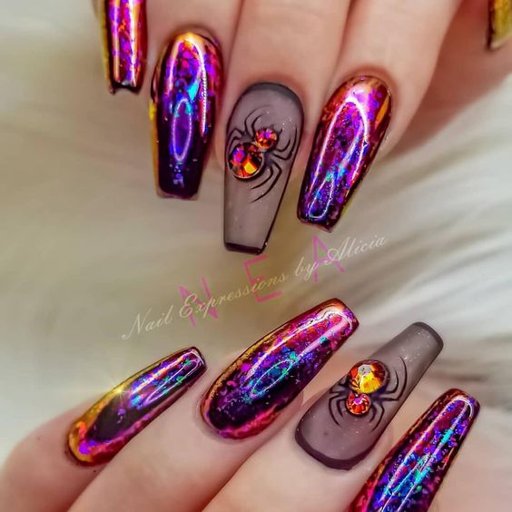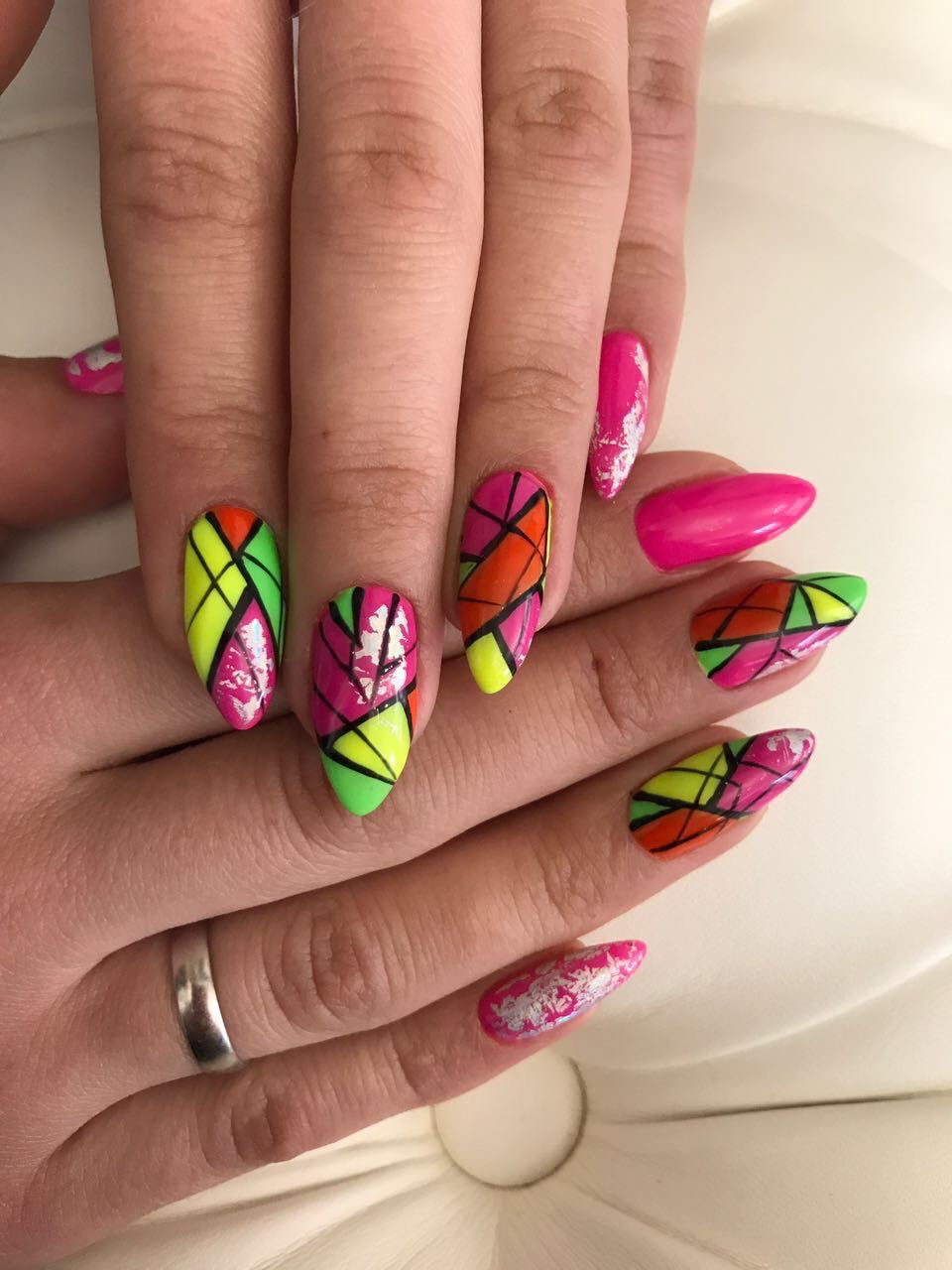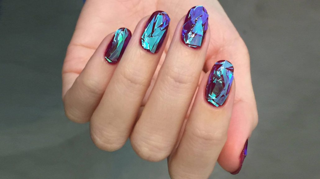 Toujours au printemps 2026, une autre idée pertinente de la décoration des ongles est le verre brisé. En utilisant cet élément de décoration pour les ongles, vous pouvez également réaliser diverses formes géométriques de toutes les couleurs.