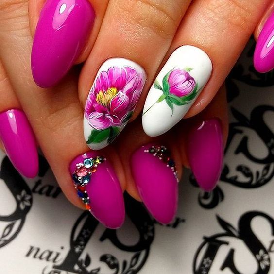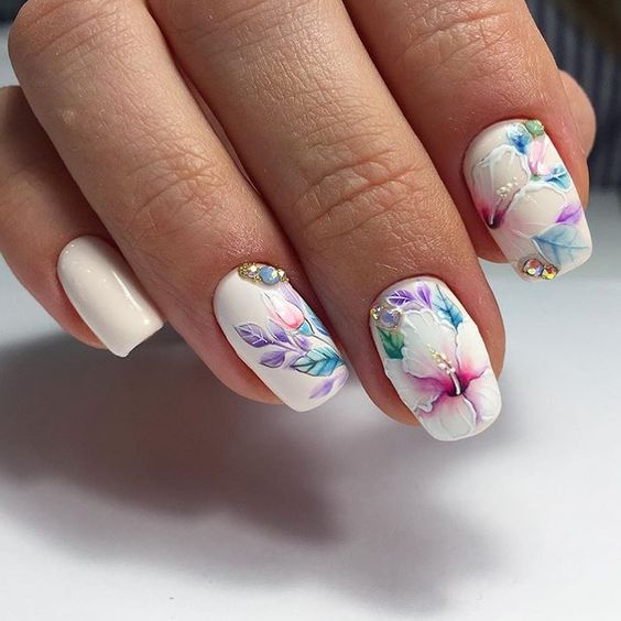 Motifs floraux, cadeaux divers, visages de filles, inscriptions et images simples, drôles de petits animaux - ce n'est pas toute la liste de ce que vous pouvez représenter sur vos pieds au printemps 2026. C'est une telle manucure avec une image qui ne sera jamais ennuyeuse et quotidienne. Bien au contraire, une telle manucure printanière est immédiatement remarquée. Il rive ses yeux sur les doigts bien coiffés de gentilles dames. La peinture peut être une excellente solution pour la décoration de vos ongles - c'est une approche populaire pour créer des impressions fraîches sur les ongles à l'aide de peintures acryliques et d'un pinceau. Pour ce faire, les ongles sont d'abord recouverts de vernis colorés, puis le maître peut dessiner la photo de votre choix. Et, bien sûr, vous pouvez ajouter un petit décor à une telle manucure.