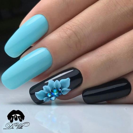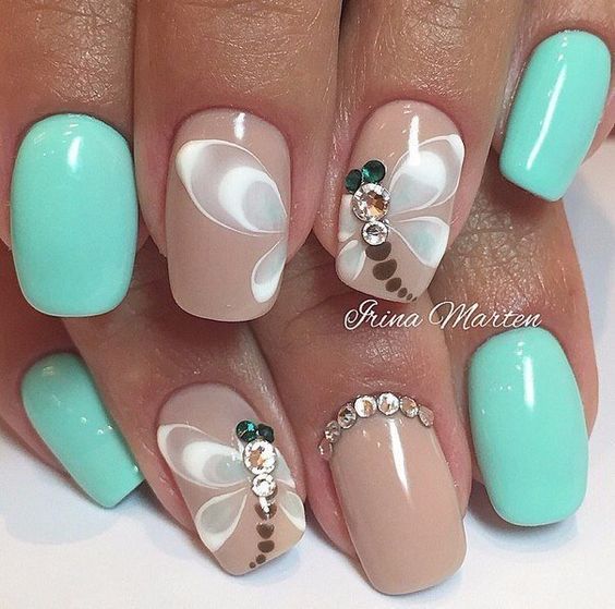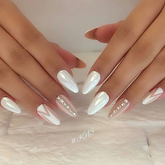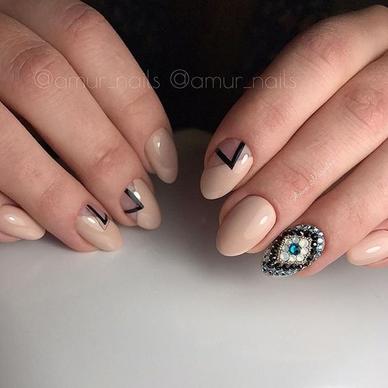 Au printemps, une conception tendance des tendances est sans aucun doute la conception géométrique de la manucure. Et pour créer une manucure tout simplement unique et originale, une idée avec des formes géométriques faites de différentes couleurs, en combinaison avec des strass ou avec des contours accentués servira. L'image, faite comme un dessin sur tous les ongles, sera très belle, intéressante et élégante.