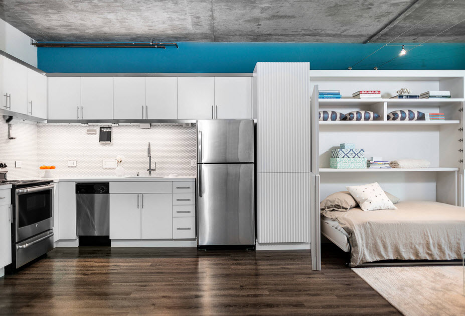 Habituellement, la taille d'un appartement d'une pièce ne permet pas d'installer un grand lit ici. Par conséquent, vous devez prendre soin de choisir un canapé pliant.