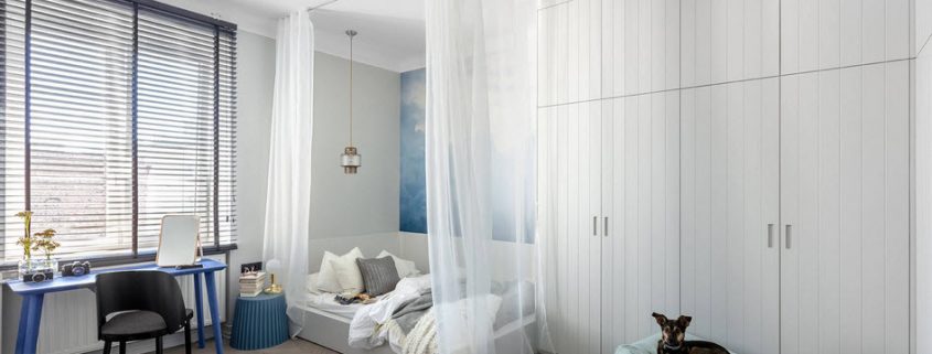 La question de l'aménagement d'une petite pièce doit toujours être abordée avec soin, en accordant une attention particulière au choix des couleurs et à la disposition appropriée du mobilier. Tout d'abord, vous devez attribuer une place pour une garde-robe spacieuse. Pour ce faire, vous pouvez utiliser le garde-manger existant ou créer artificiellement une niche. Il doit y avoir nécessairement des portes de compartiment, car les portes battantes dans une petite pièce enlèvent une zone déjà rare.