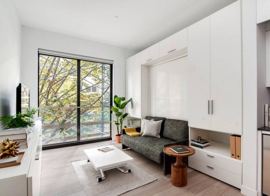 Le mobilier est également recommandé de choisir pliant ou coulissant. Tout mobilier transformant est le meilleur ami des petits appartements.