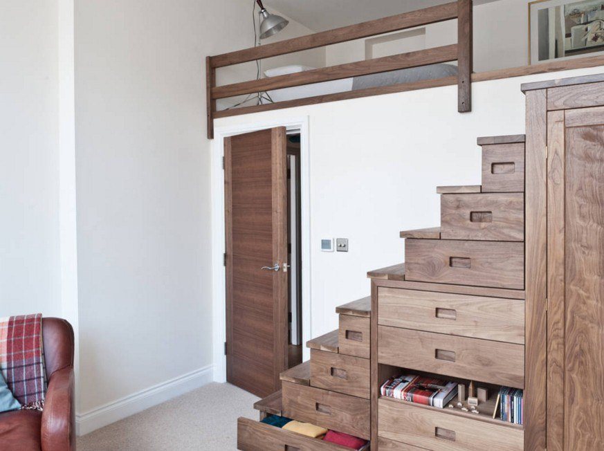Dans une famille avec un enfant, un lit mansardé peut être équipé. Idéalement, s'il existe des mécanismes avec une armoire intégrée ou une table coulissante. Ainsi, vous pourrez équiper votre bébé de son propre coin, qui ne prendra pas beaucoup de place.