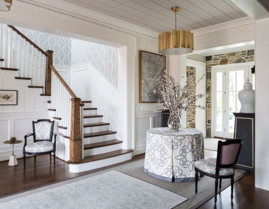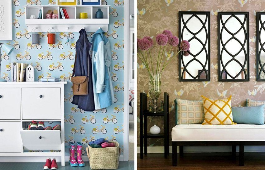 - Les papiers peints en vinyle sont d'excellents choix pour le hall d'entrée. De plus, ils se lavent facilement et ont une large gamme de nuances.