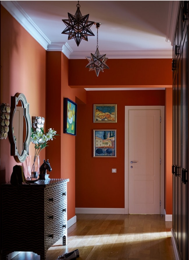 Les caractéristiques principales lors du choix des murs du couloir ou du couloir sont la fonctionnalité et la beauté. Le couloir est mieux conçu dans des couleurs vives. Ils agrandissent un petit espace, sont universels et remplissent la pièce de lumière. Il est bon de créer un contraste dans l'arrière-plan général avec la porte d'entrée et les entrées de pièces adjacentes, ainsi que de combiner des motifs et des couleurs similaires.