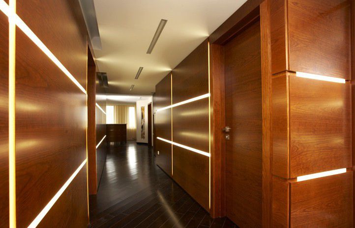 Mur design dans le couloir et le couloir. Matériaux et finitions