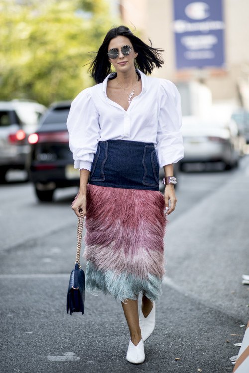 Les jupes rectangulaires sont la tendance la plus brillante de cette année. Les tissus denses les rendent plus ludiques. Superbes jupes longues avec un imprimé brillant et abstrait. Les produits monophoniques aux couleurs sombres ne sont pas moins charmants. Vous pouvez les combiner avec un sweat-shirt à la mode ou un chemisier fin en gazon.