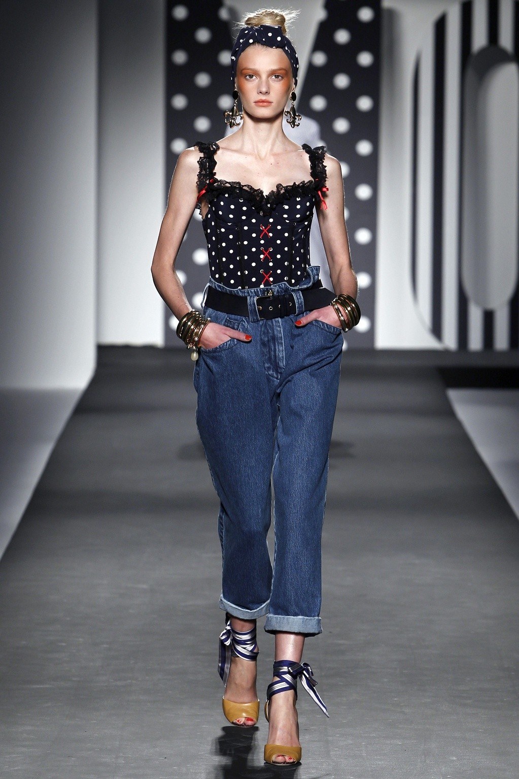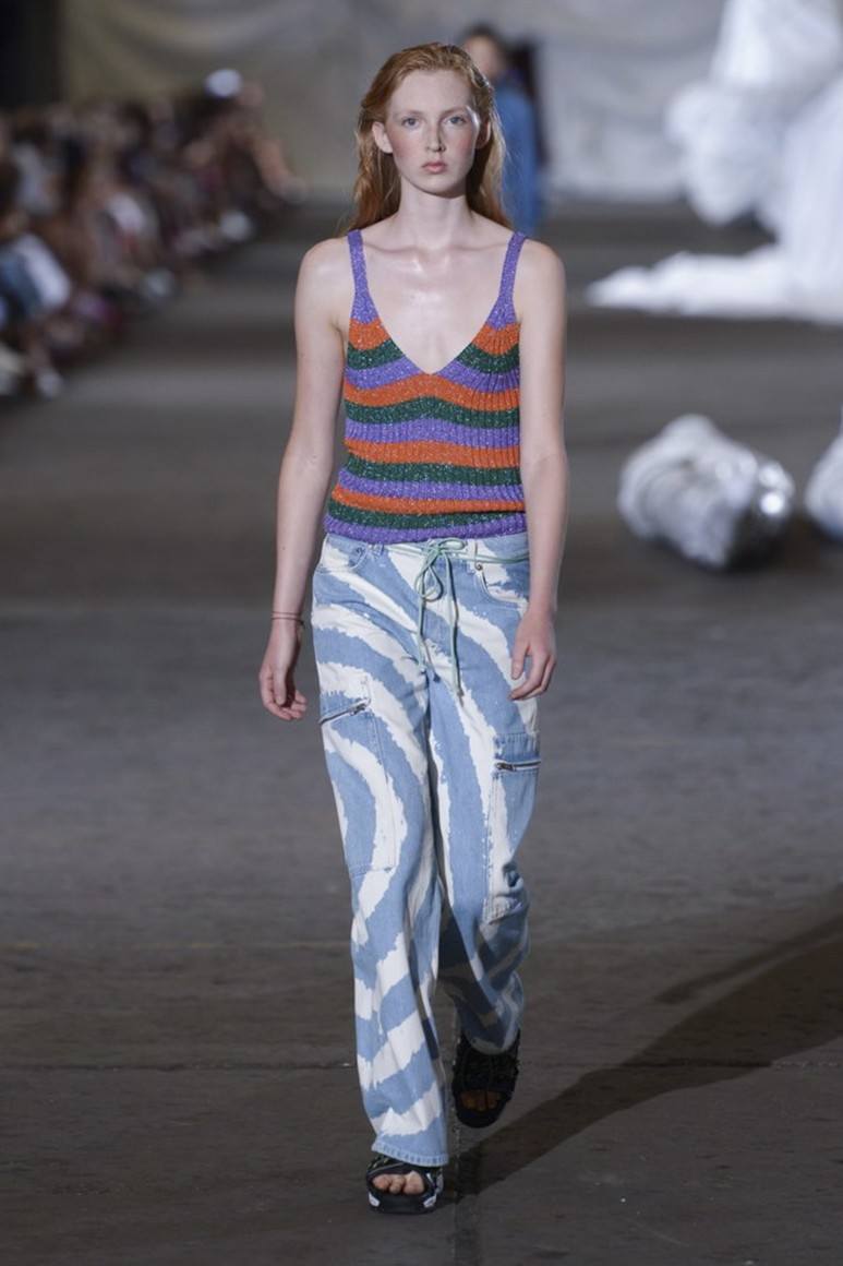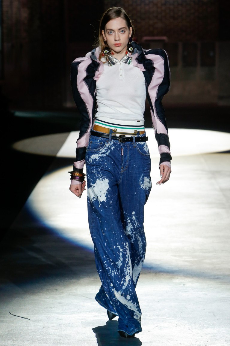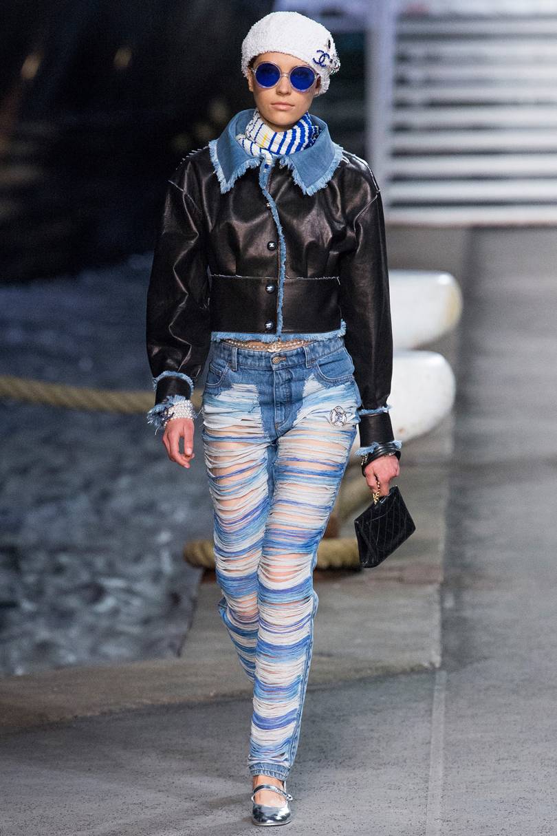 Les mannequins éraflés n'étaient pas largement représentés aux défilés de mode de cette saison, mais il est connu que certains fabricants de mode incluent cet élément dans leurs collections d'été. Si vous avez besoin de porter de tels jeans pour qu'ils cachent visuellement quelques kilos en trop ou étirent la silhouette, vous avez besoin que la bande légèrement usée soit peu large et située au centre et au milieu de vos hanches.