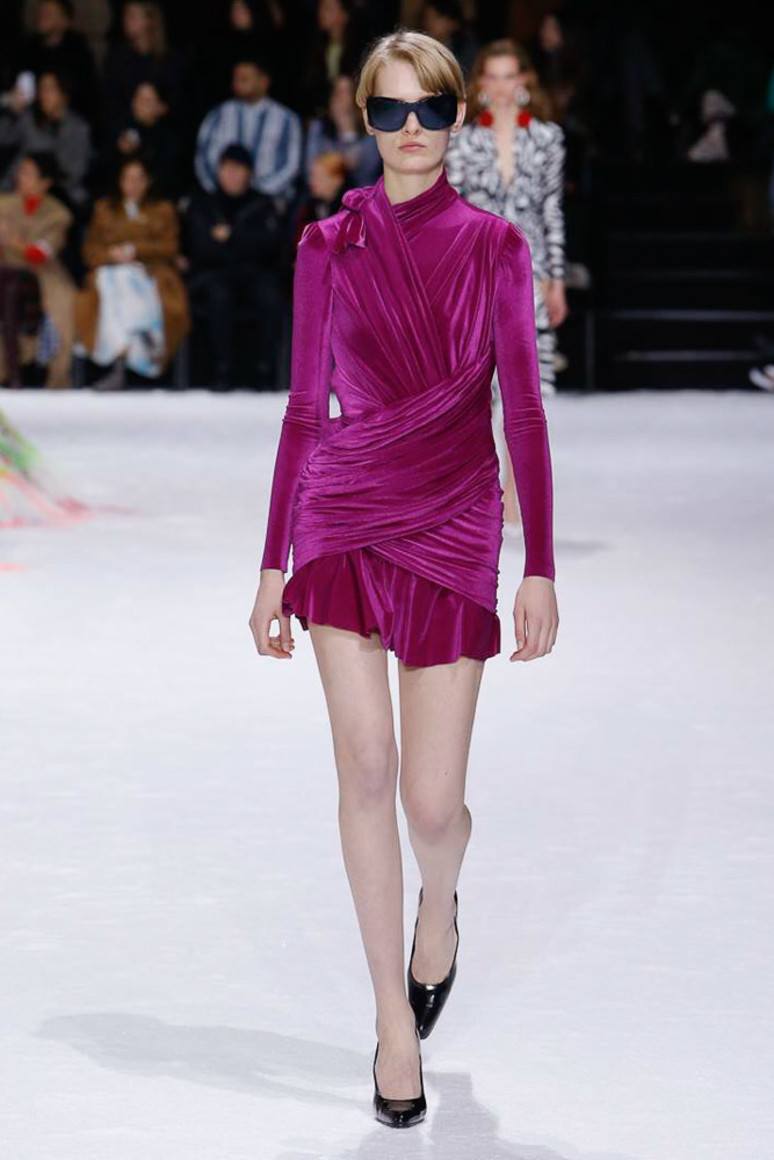 Une robe courte pourpre est la tendance constante de toutes les saisons.