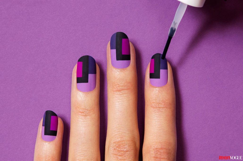 Le design géométrique est aujourd'hui l'une des tendances du nail art. Se faire une telle manucure est assez simple. Vous avez juste besoin d'utiliser du ruban adhésif ou des pochoirs. Il peut s'agir de simples lignes horizontales ou verticales, de triangles, de losanges, de carrés ou même de formes abstraites.