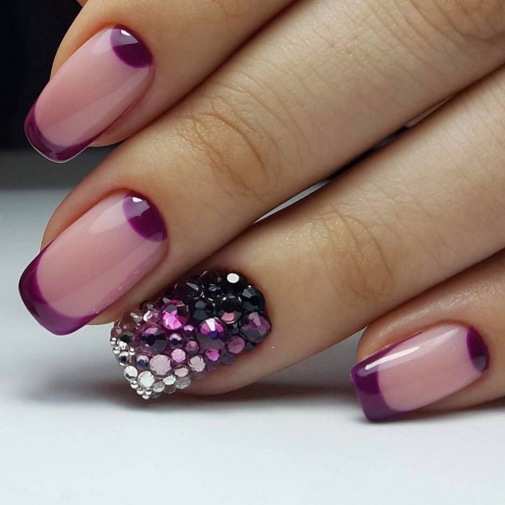 Décorer les ongles avec des strass de différentes tailles sera toujours pertinent. Dans le même temps, les stylistes recommandent de travailler avec eux avec soin, car si vous en faites trop avec leur numéro, vous obtiendrez un résultat qui aura l'air ridicule. Une petite quantité de strass suffit à décorer 1 à 3 soucis pour un look romantique et élégant.