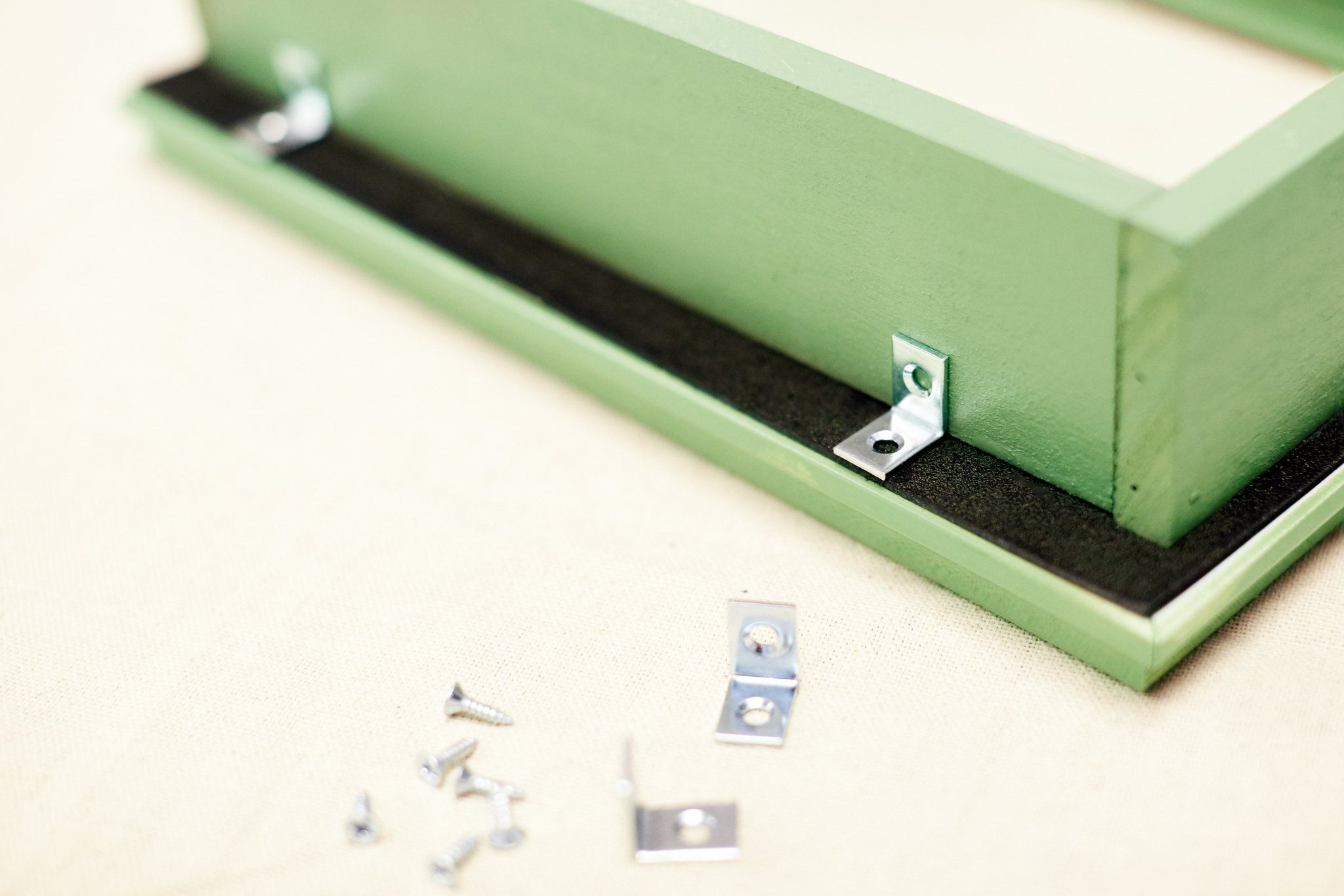 Nous peignons les côtés du cadre en bois et le laissons sécher.