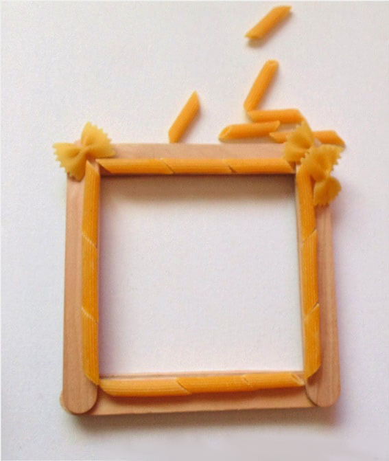 Une fois les billettes complètement sèches, nous procédons au décor. Collez des pâtes frisées avec une simple colle PVA.