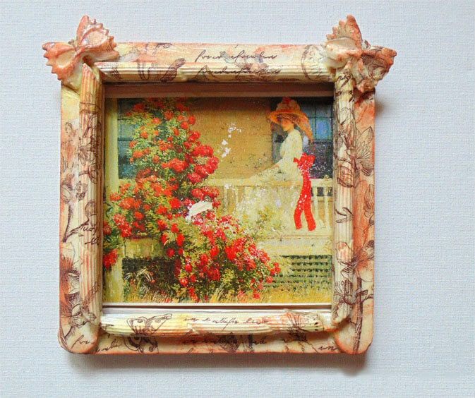 Nous recouvrons le produit d'une couche de vernis et partons pendant plusieurs heures. Beau cadre avec vos propres mains est prêt!