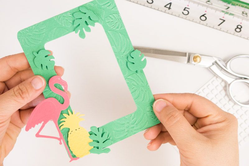 Collez progressivement le décor préparé à l'avance sur la face avant du cadre.