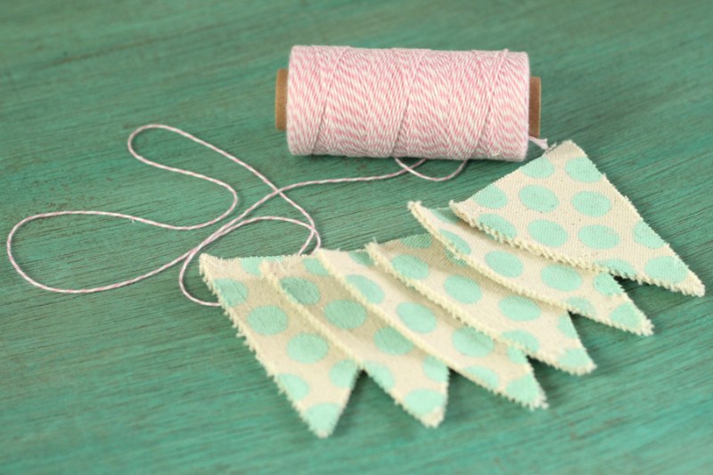 Si vous le souhaitez, vous pouvez découper des triangles dans le tissu et les relier avec un fil. Obtenez une sorte de guirlande pour la décoration.
