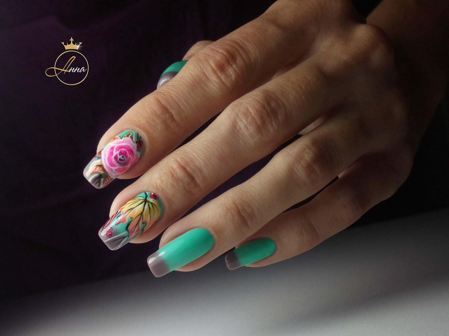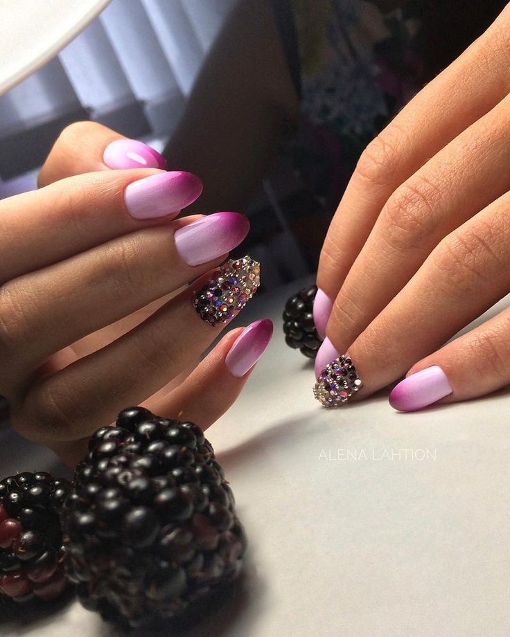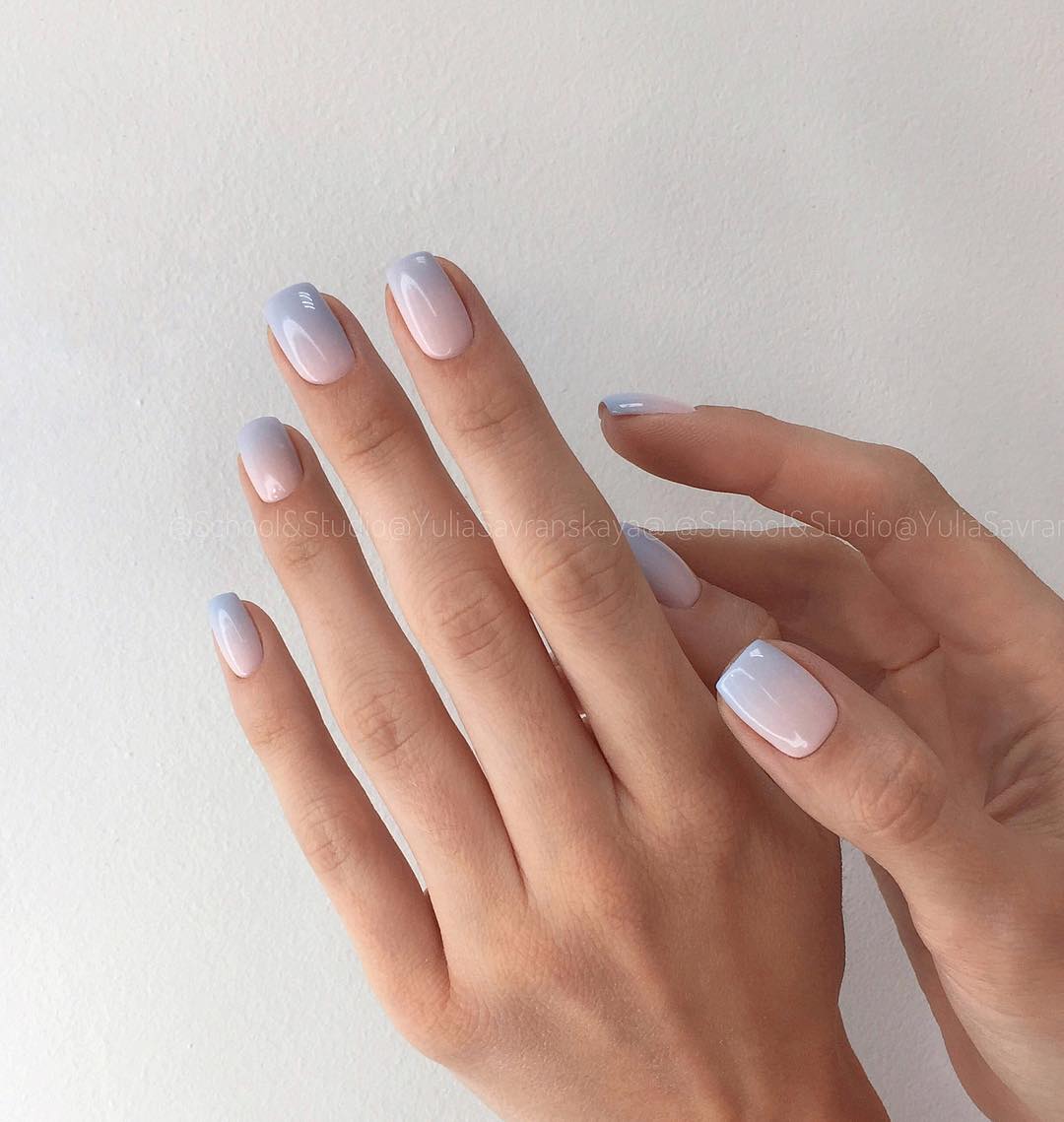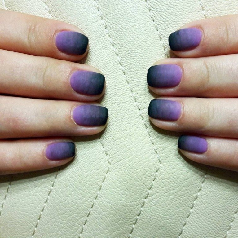 Pour ne pas gâcher votre incroyable manucure, il est utile de travailler avant de traiter la zone autour de l'ongle avec une légère couche de ruban adhésif (colle spéciale). Une fois que la colle est complètement sèche, vous pouvez commencer à travailler. Eh bien, bien sûr, à la fin de la manucure avec un léger mouvement, le ruban doit être retiré. Si ce dispositif n'est pas à portée de main, le vernis dépassant les limites de la manucure doit être retiré immédiatement après l'application. Il existe également une astuce principale pour effectuer une veste ombre. N'appuyez pas trop fort sur l'éponge sur la plaque à clous. Cela ruinerait les transitions douces des nuances de couleurs.Après chaque séchage de l'ongle, la couche de vernis est mise à jour.