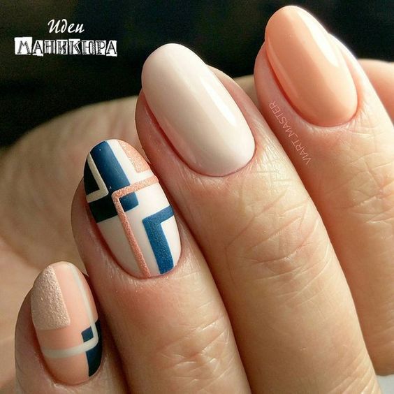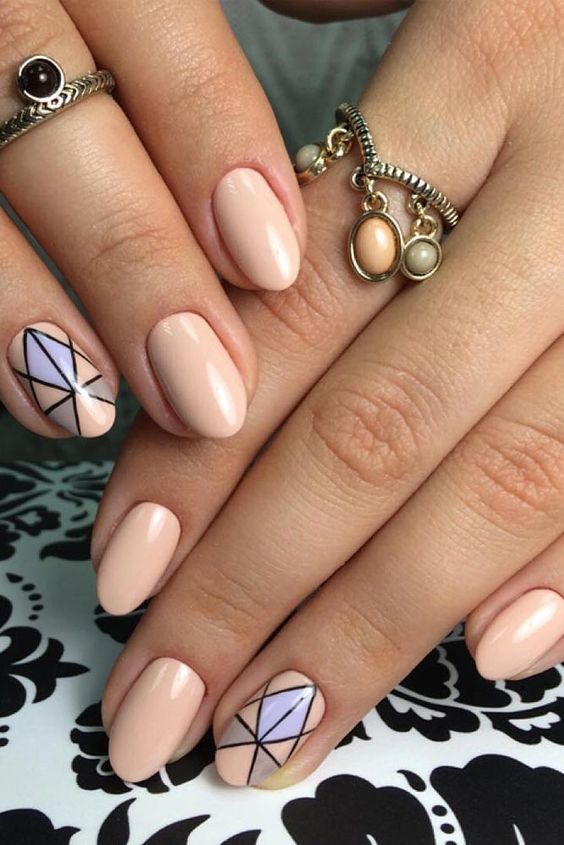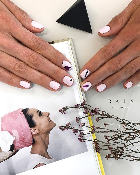 La simplicité de la manucure géométrique réside dans son minimalisme. Une simple bande lisse sur un ongle place déjà un tel dessin dans la catégorie géométrique. Les lignes simples, les cercles et les semi-ovales sont faciles à exécuter. Mais il y a encore une certaine originalité dans le minimalisme géométrique. Il est facile et simple de créer un motif géométrique plus complexe à l'aide de pochoirs. Par conséquent, une telle manucure peut également être considérée comme simple. Il n’est pas difficile de poser un pochoir sur l’ongle et de peindre l’ensemble de sa plaque. Le résultat final dépassera toutes les attentes et le temps consacré à l'exécution de formes géométriques. Voyons une photo de la manucure géométrique simple 2026.