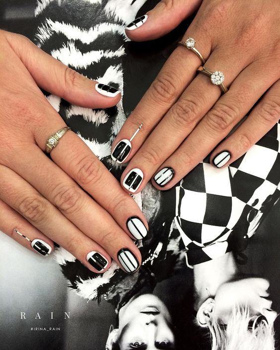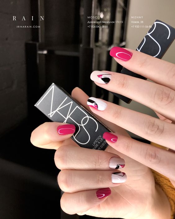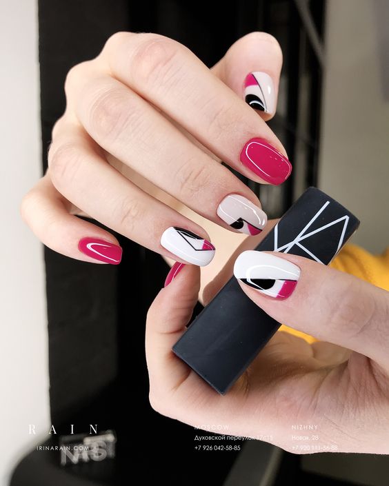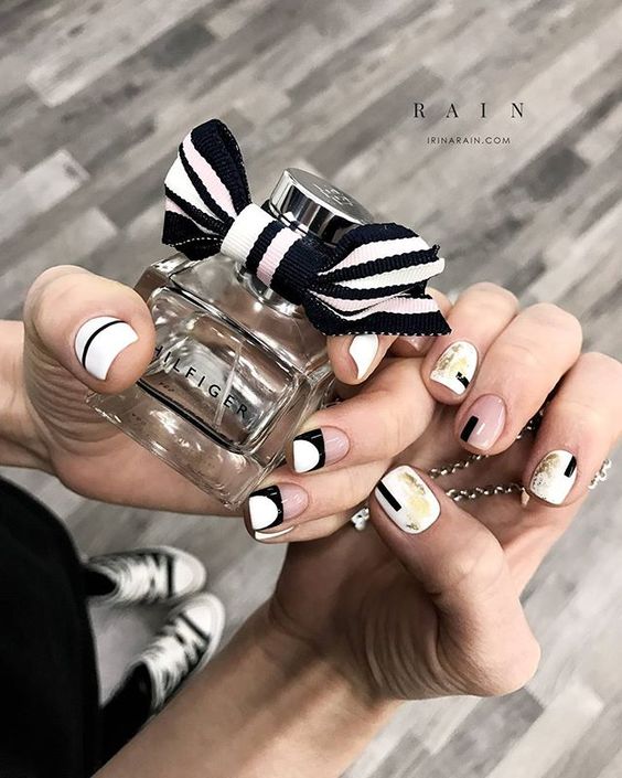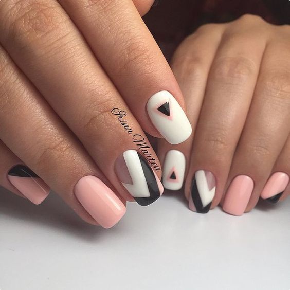 Les formes de manucure géométrique et géométrique sont toutes deux représentées, mais ce n'est que pour un objet qu'elles sont indépendantes de la couleur. Dans le nail art, c'est tout le contraire. Cela dépend en grande partie du contraste des couleurs: l'apparence du dessin de l'ongle, le choix harmonieux des teintes, leur combinaison avec le style. En choisissant un dessin géométrique, vous pouvez reproduire quelque chose d'unique, d'une beauté inhabituelle et extraordinaire. Mais même toutes ces caractéristiques donnent à la manucure géométrique un aspect individuel et universel. Les formes géométriques sophistiquées sont étonnantes sur les ongles de femme. Expérience et dextérité vous permettront de dessiner de très beaux motifs géométriques.