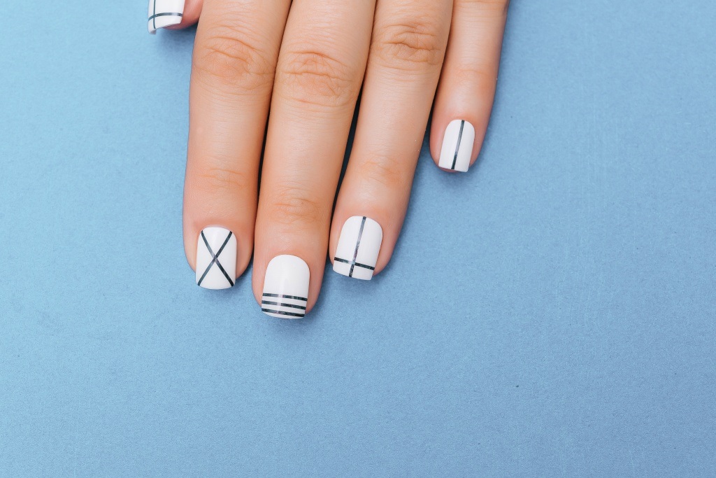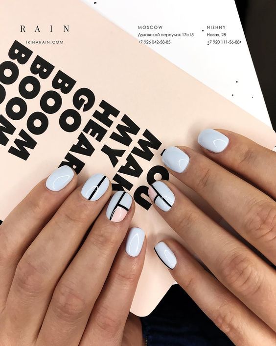 Bande à la mode ou manucure géométrique spectaculaire avec des lignes.