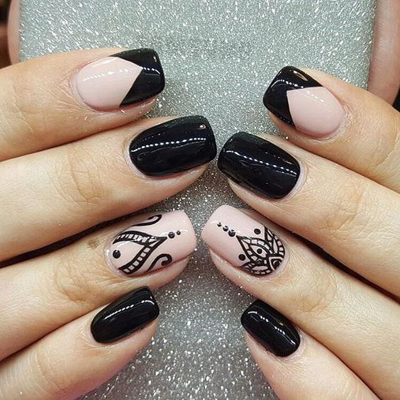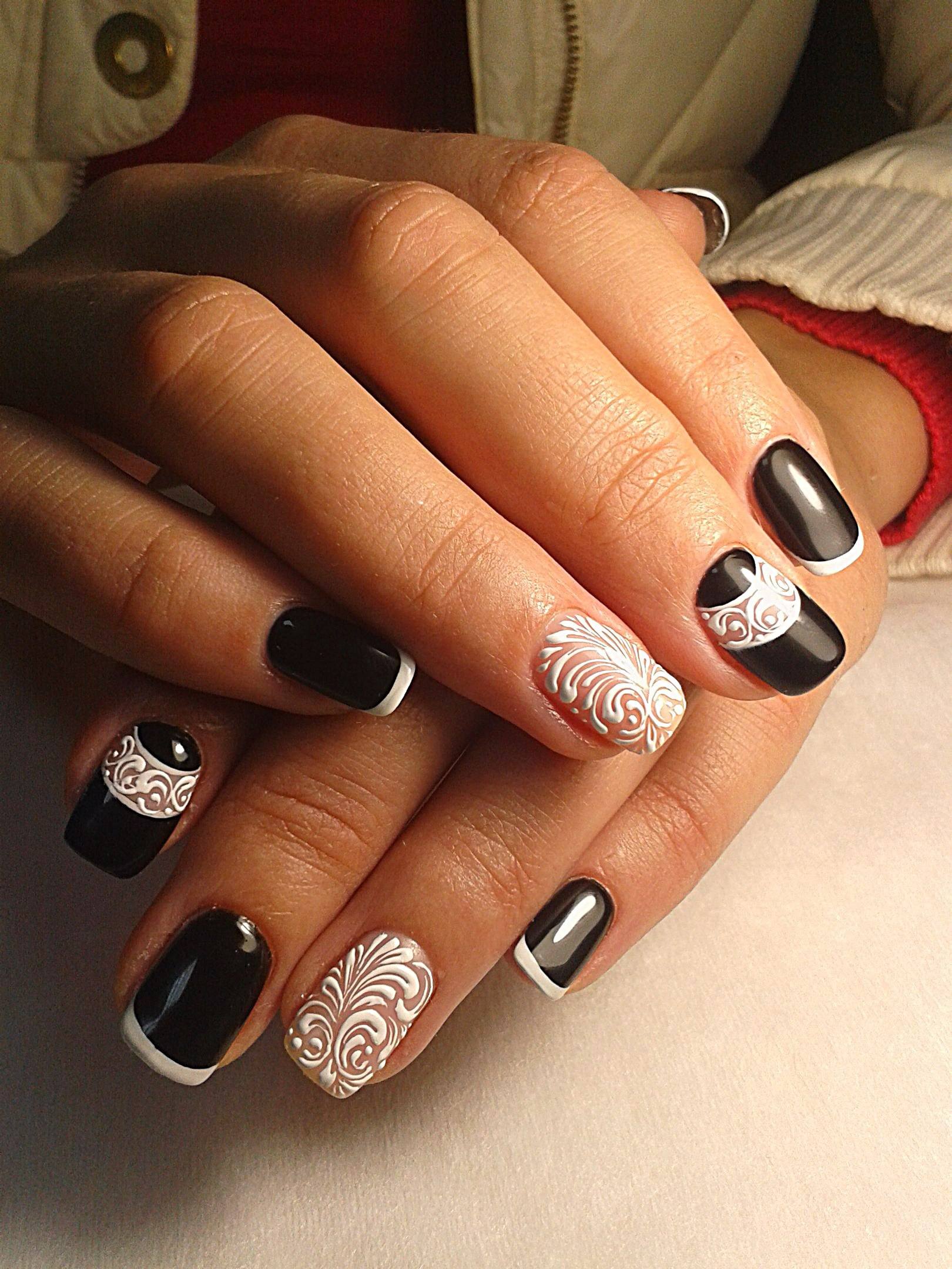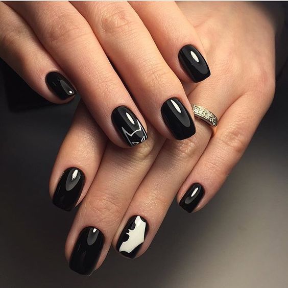 La manucure noire est une autre raison de concrétiser vos idées, remplaçant la vie quotidienne grise par une nouvelle vie inhabituelle. Et qui refusera cela? Le design noir est tout à fait pertinent. Il est utilisé par 50% des femmes du monde entier et de tous les âges. Même les plus de 60 ans décident finalement d’essayer le nail art sombre. Mélangez le noir et le blanc et obtenez une manucure époustouflante. Si vous abordez l'utilisation de ces deux couleurs classiques de manière originale, vous pouvez créer une manucure unique qui mettra définitivement en valeur votre personnalité.