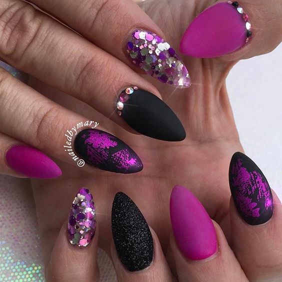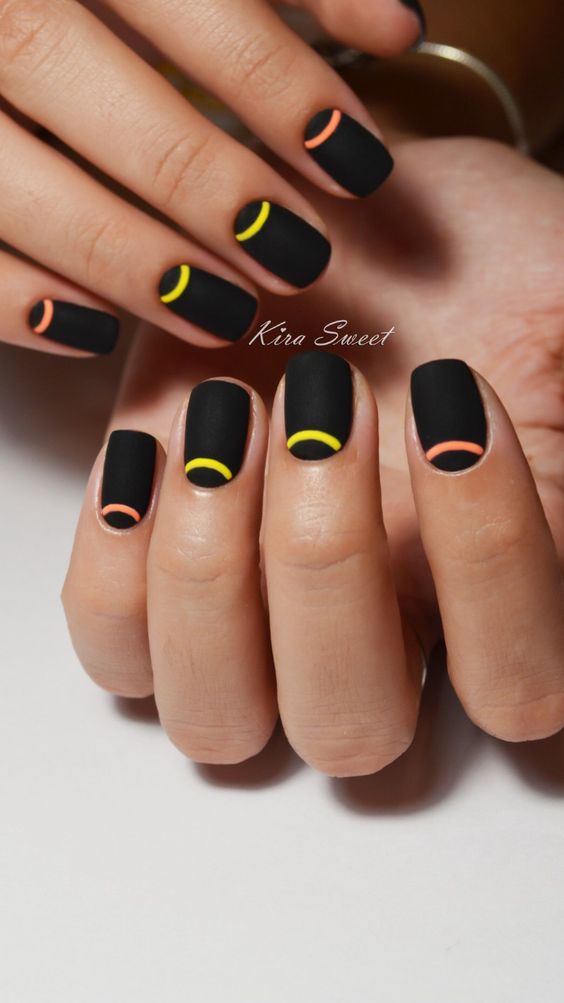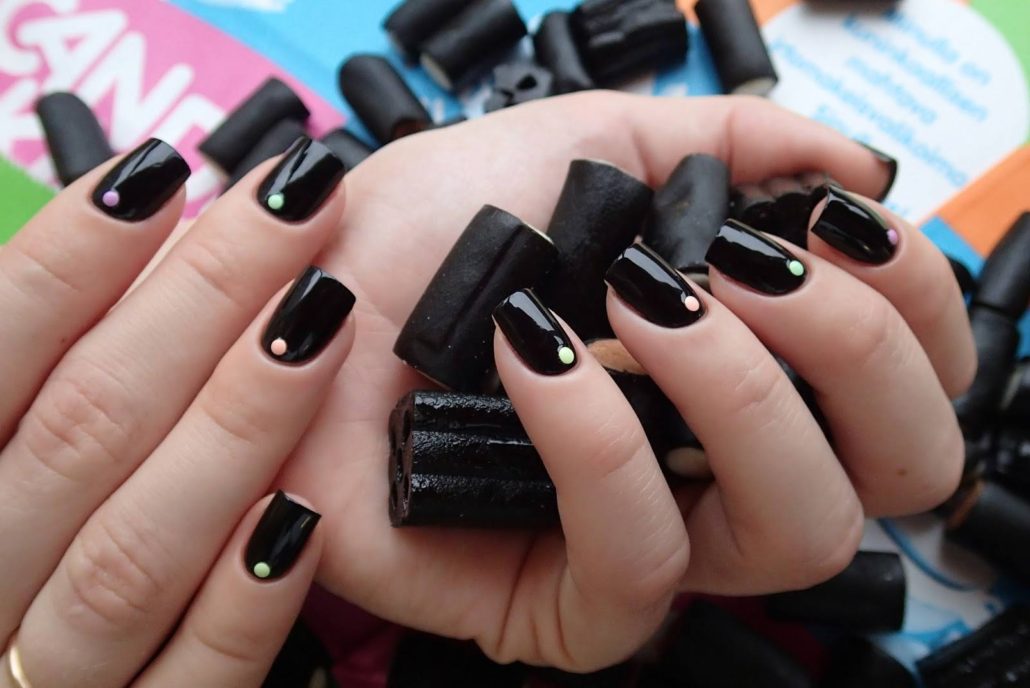 Un avantage significatif du noir profond est la possibilité de combiner facilement avec une grande variété de couleurs. Cette dignité de couleur impénétrable a déjà été appréciée par de nombreux experts dans le domaine du nail art. Parfaitement nuances de la couleur sombre en appliquant un vernis d'une nuance différente sur un ongle.