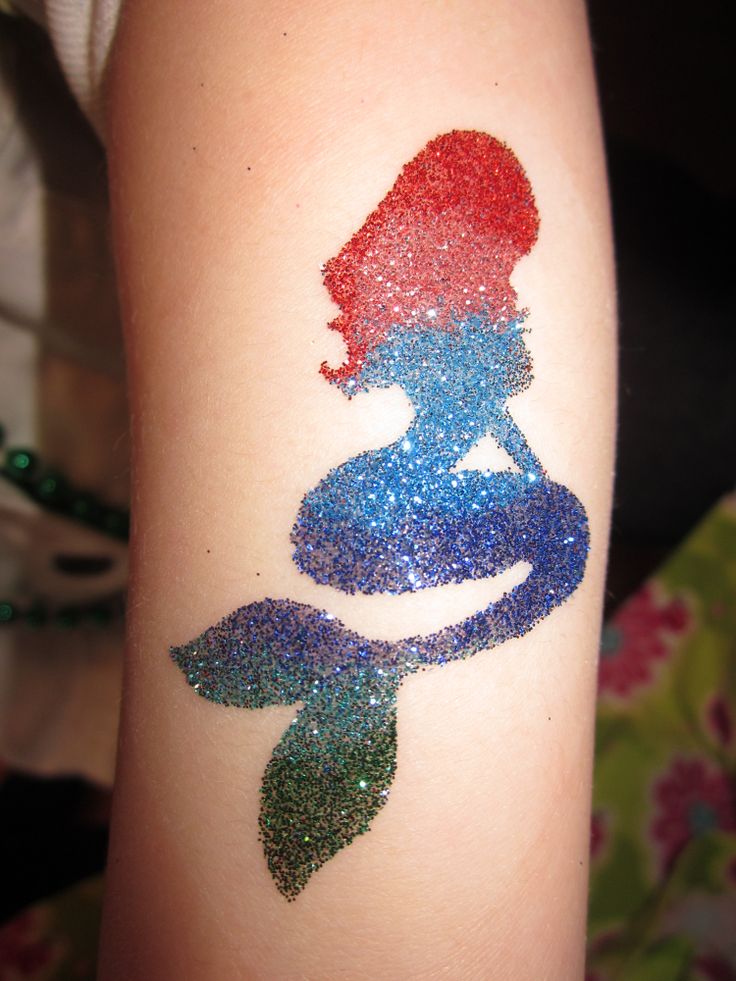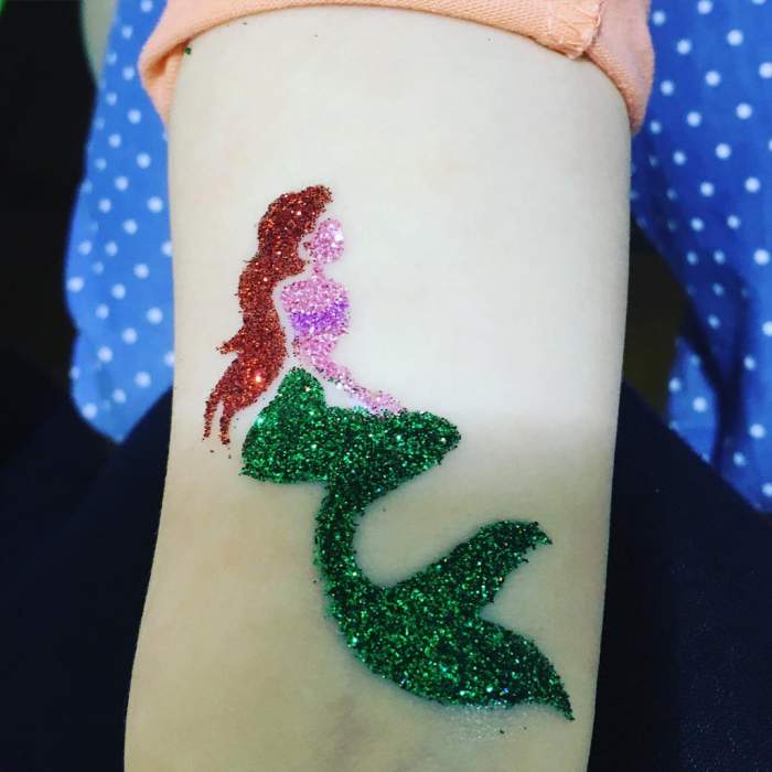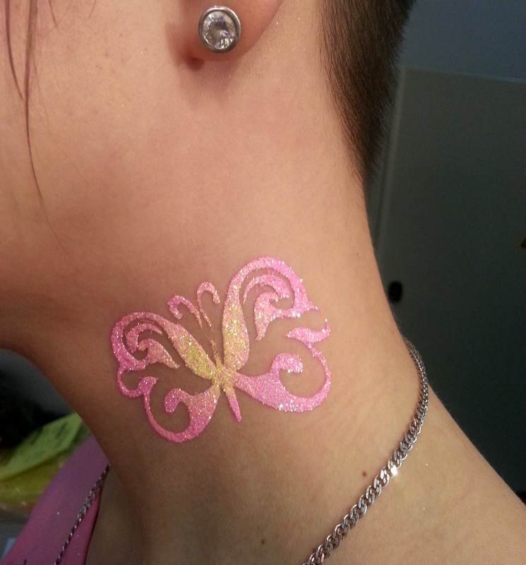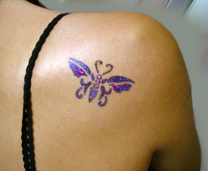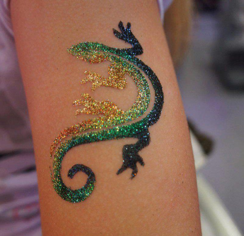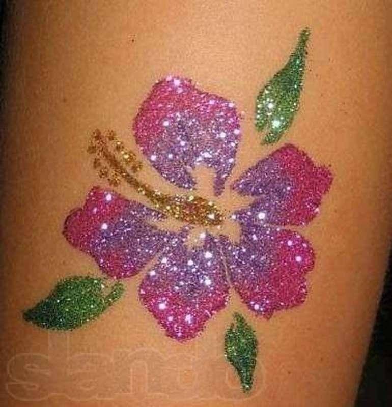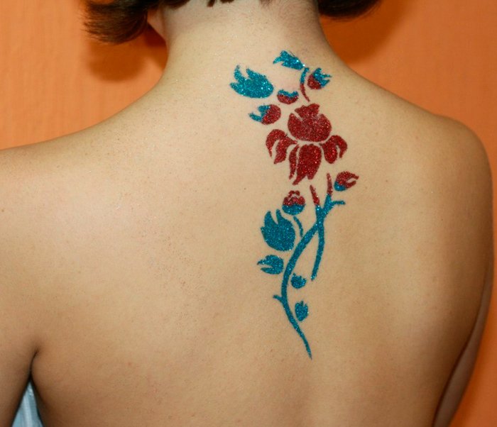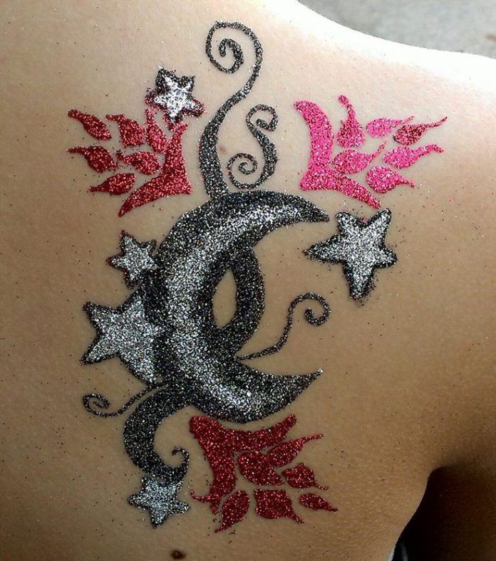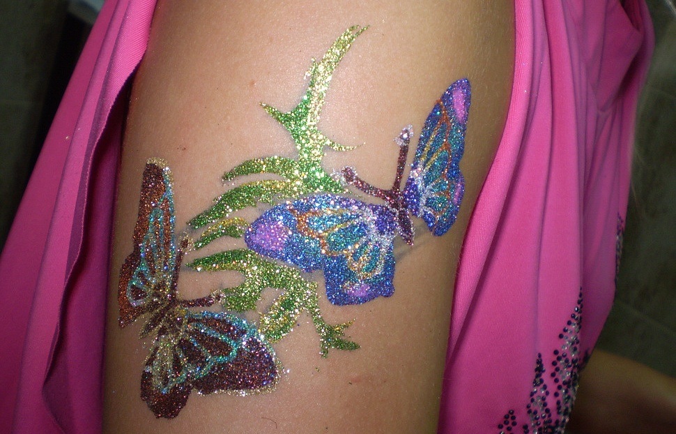 Un tatouage temporaire, réalisé à l'aide de paillettes attrayantes, est caractéristique pour attirer non seulement les filles, mais également les enfants de tout âge. Le motif est superbe et très visible même la nuit. Peu importe où le client souhaite appliquer le dessin, il choisit le plus souvent des parties du corps telles que les bras, les jambes, le dos ou la poitrine. Les enfants aiment surtout dessiner sur leurs visages des papillons ou des motifs floraux. Le tatouage de paillettes est considéré comme une solution universelle qui n’a aucun effet secondaire ni effet négatif sur la peau. Cette variété de dessins portables n'a pas non plus de restrictions de couleur ni de taille, tout dépend des désirs et des goûts du propriétaire. Une qualité tout aussi importante et positive d’un tel tatouage est l’utilisation d’une colle spéciale, totalement inoffensive pour la santé humaine, qui ne provoque ni irritation ni allergie.