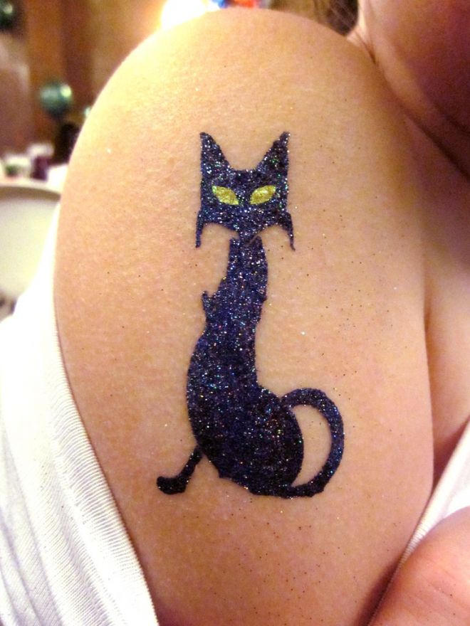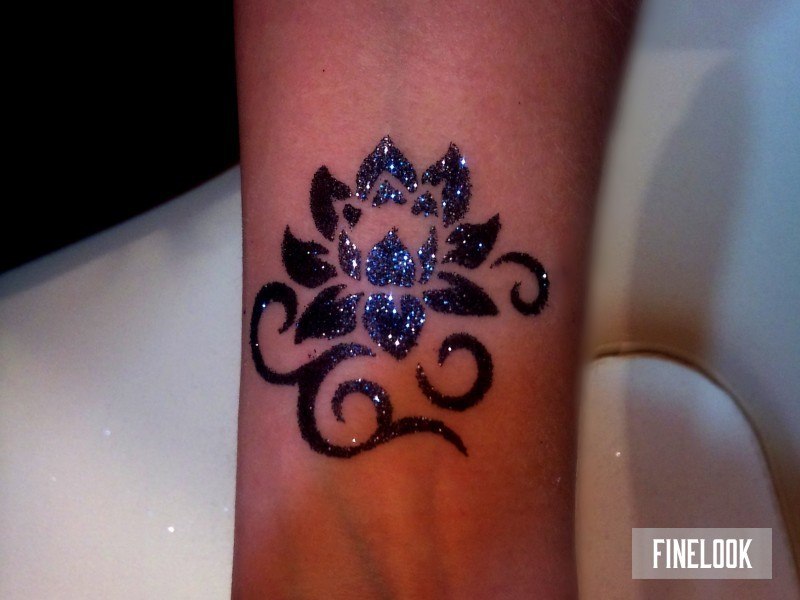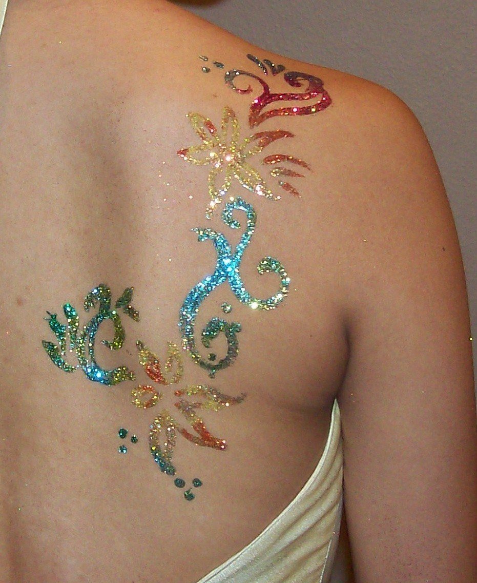 Les tatouages scintillants sont un type de dessin très populaire sur le corps. Sa mise en œuvre est dans l'application d'étincelles. Les particules étincelantes sont retenues sur le corps avec une colle hypoallergénique. Les tatouages scintillants, lumineux et colorés avec des étincelles sont typiques pour les filles. De cette façon, vous pouvez décorer votre corps et attirer une attention considérable. Il est à noter que ce type particulier de conceptions de sous-vêtements a la plus grande gamme de couleurs. Les tatouages scintillants peuvent parfaitement compléter un look élégant et original, le rendant lumineux. Un autre avantage principal de la variété de tatouages temporaires est que si la photo est fatiguée, vous pouvez facilement vous en débarrasser.