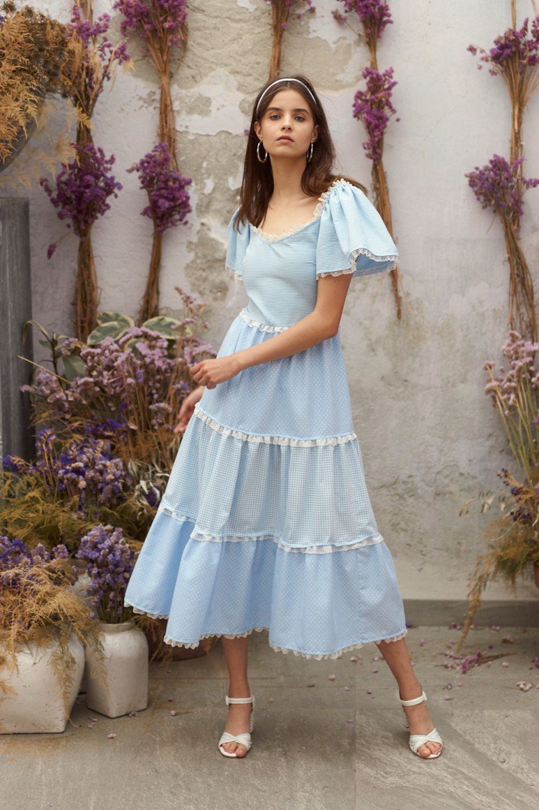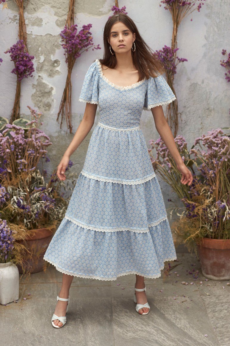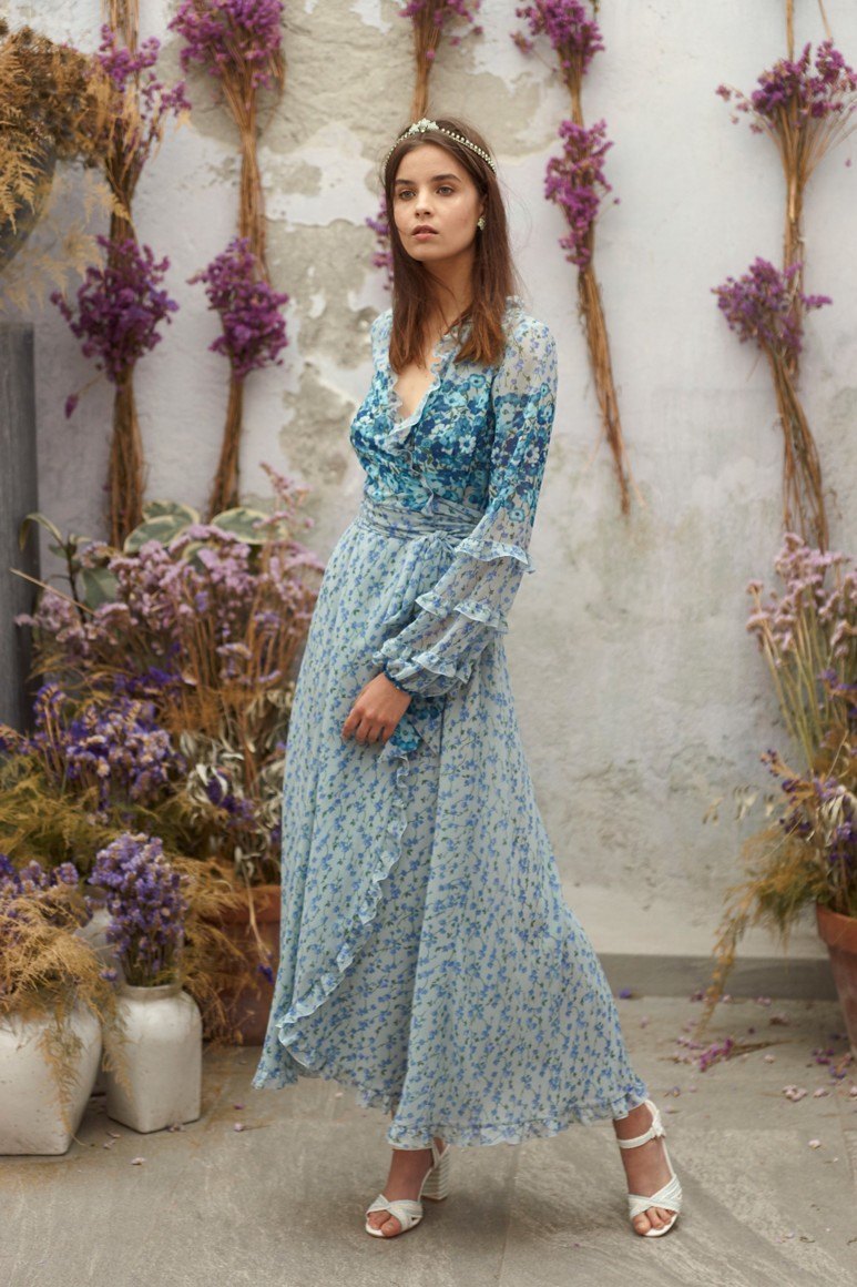 Robes romantiques en bleu avec des fleurs