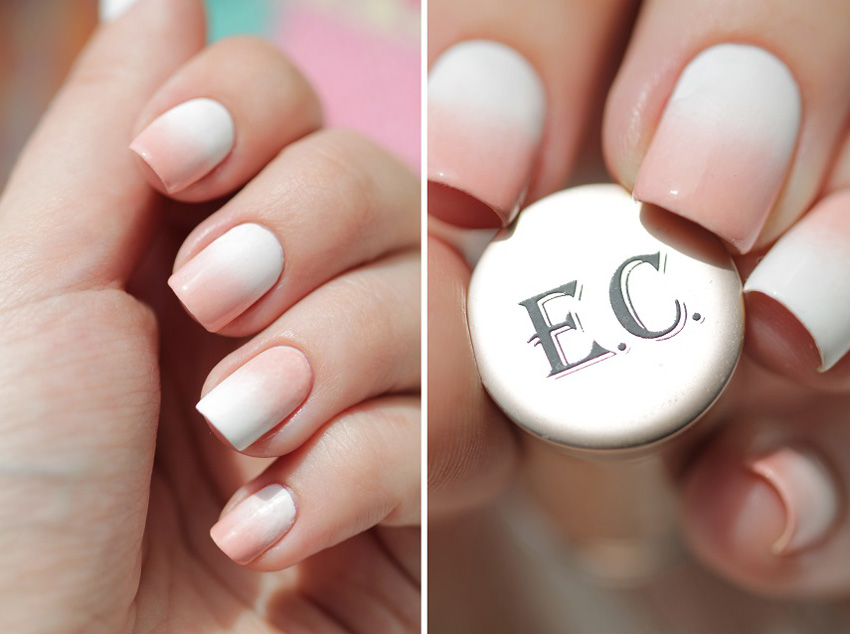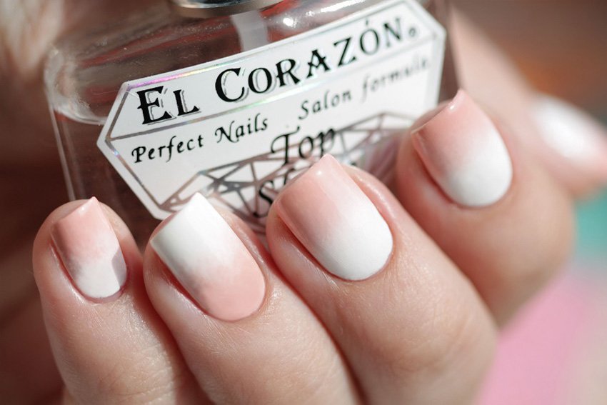 Lors de la création d'un tel design, des vernis, une éponge, une base et une couche de finition sont nécessaires. Vous devez d’abord préparer les ongles et leur donner une forme. Ensuite, vous devez appliquer une couche de base ou une couche transparente. Cela aidera à protéger les ongles, à les renforcer et à rendre la manucure plus résistante. Ce n'est qu'après le séchage de cette couche que nous appliquons le vernis principal. Le blanc convient le mieux car il se marie bien avec presque tous les tons.