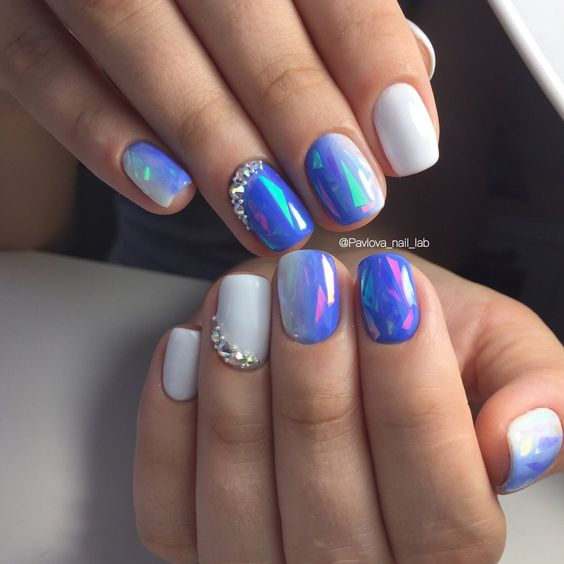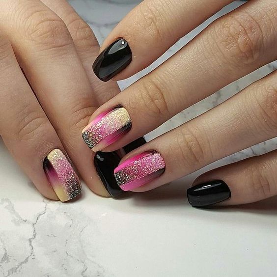 Si vous le souhaitez, vous pouvez utiliser non seulement des vernis colorés, mais également les combiner avec des paillettes. Cette conception semble très inhabituelle, mais en même temps élégante. En d’autres termes, c’est une excellente option pour une soirée ou un événement.