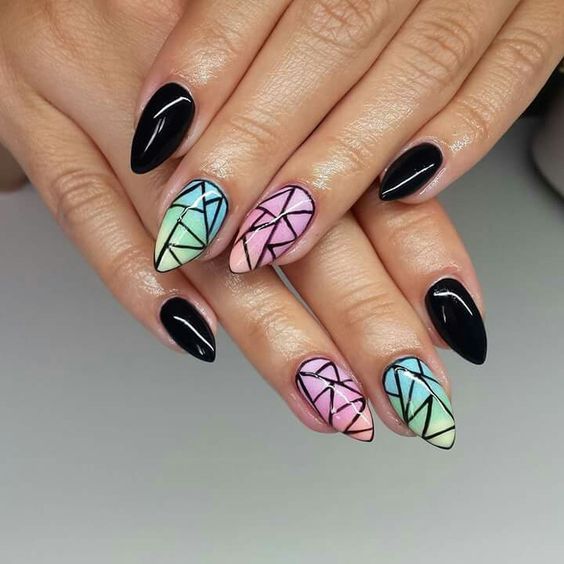 La manucure à gradient semble autosuffisante. Mais parfois, je veux compléter un peu. Dans ce cas, nous suggérons de prêter attention à divers dessins. Après tout, avec leur aide, vous pouvez définir le caractère du dessin. Par exemple, en choisissant un dessin laconique avec des nuances neutres de vernis, une manucure aura l’air délicat et même romantique. À son tour, en combinant des lignes géométriques avec des couleurs vives, vous obtiendrez un design plus audacieux et audacieux.