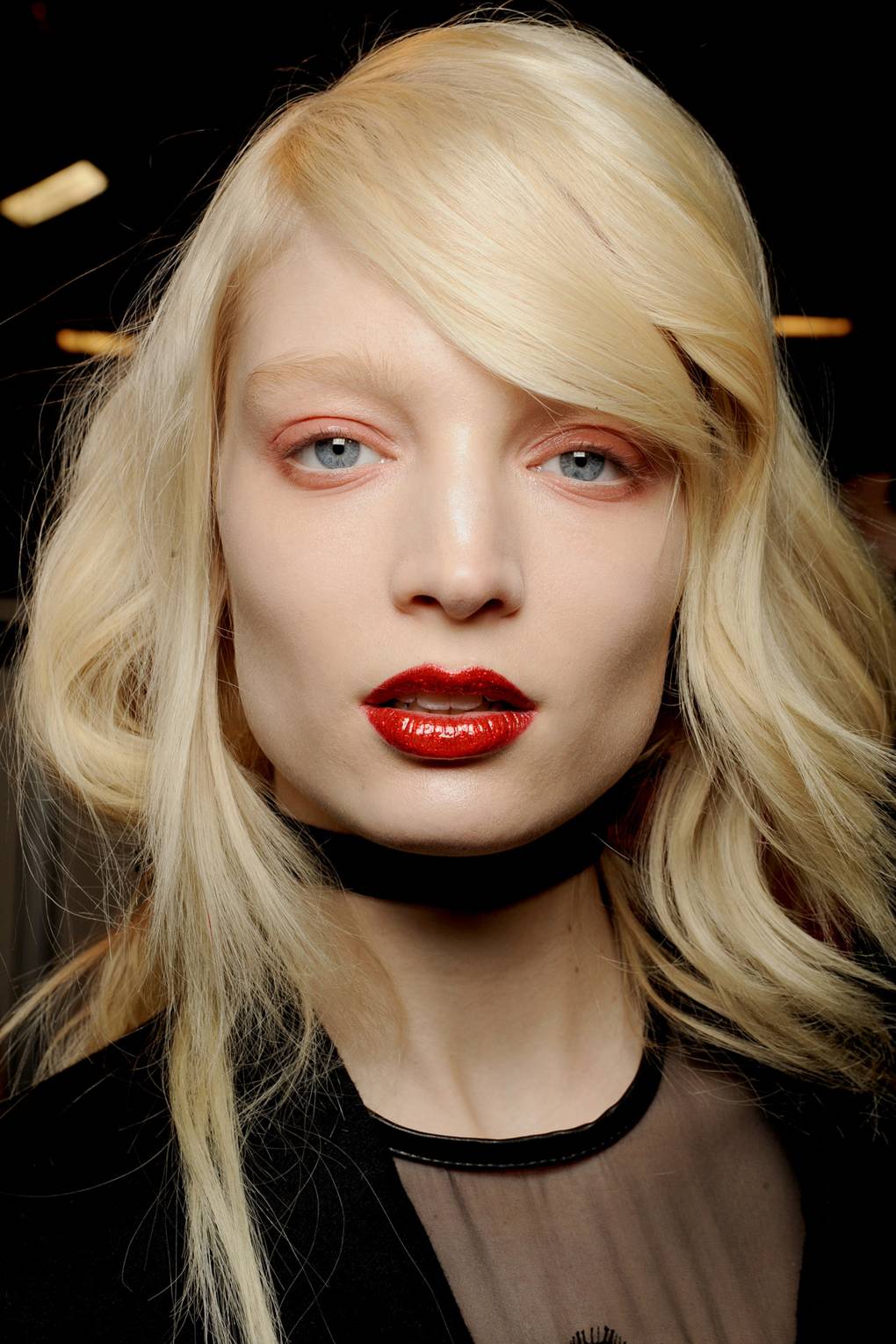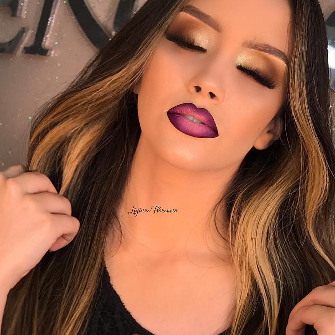 Une autre couleur de rouge à lèvres à la mode cet hiver était le violet. Le rouge à lèvres violet contribuera idéalement à créer un regard mystérieux et intriguant. Un tel rouge à lèvres sera indispensable pour créer un maquillage de fête ou de soirée. Malgré le fait que cette année, le maquillage pour les lèvres à la mode est une application floue et légèrement floue de rouge à lèvres, les couleurs pourpres et violettes s’appliquent à l’aide d’un pinceau fin afin de souligner le contour net des lèvres et de le rendre plus expressif.