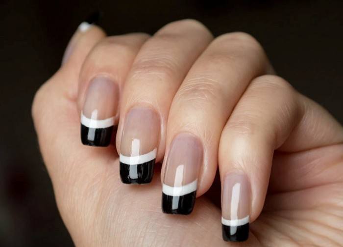 Ainsi, les Français peuvent à juste titre être considérés comme la technique de manucure la plus populaire. Ce type de design a été inventé il y a longtemps, mais à ce jour, il n'a pas perdu de sa pertinence et est très demandé. Les améliorations régulières sont à jamais fixées en tant que nouveaux produits et deviennent populaires parmi la juste moitié de l’humanité. Les dames ont apprécié la veste noire et blanche mystérieuse et mystérieuse, mais toujours à la mode et pratique. Ceci est comparable à la grâce de la photographie en noir et blanc, mais uniquement dans le contexte de la conception des ongles.