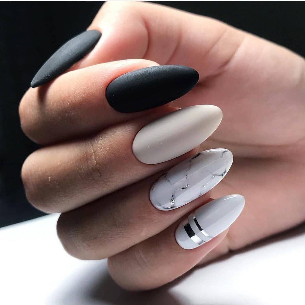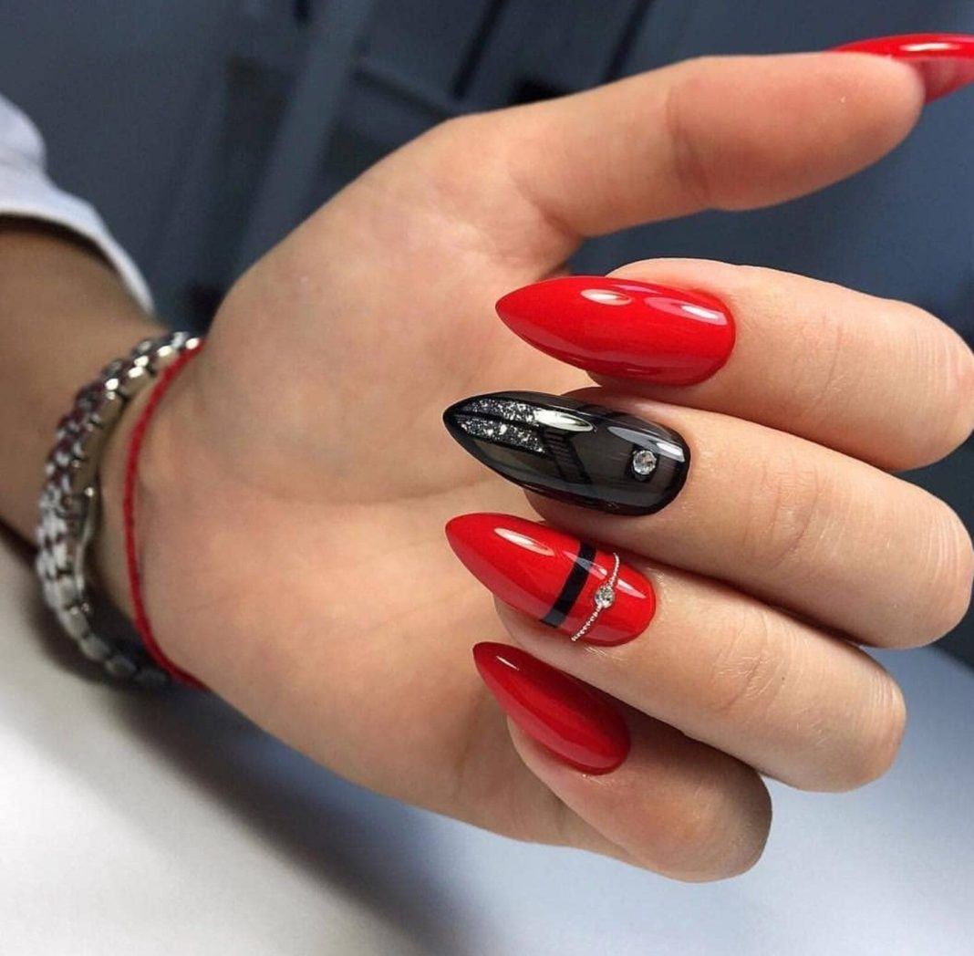 Bien sûr, les nuances classiques sous forme de rouge, noir et blanc sont des options universelles. Ils conviennent à tout le monde et à tout événement. Par conséquent, ils sont souvent combinés les uns aux autres, créant de nouveaux types de design des ongles intéressants.