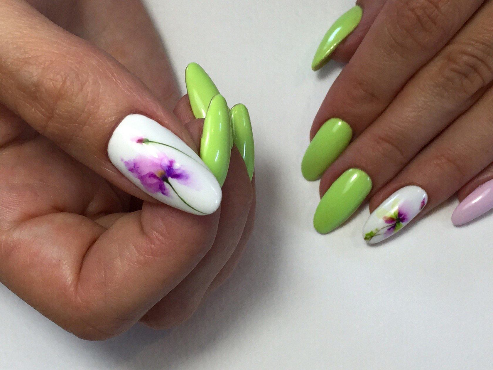 Les grandes feuilles vertes sont devenues un véritable succès de la saison estivale. Ils complètent parfaitement la manucure dans des tons neutres. De plus, le design est brillant, juteux et très intéressant.