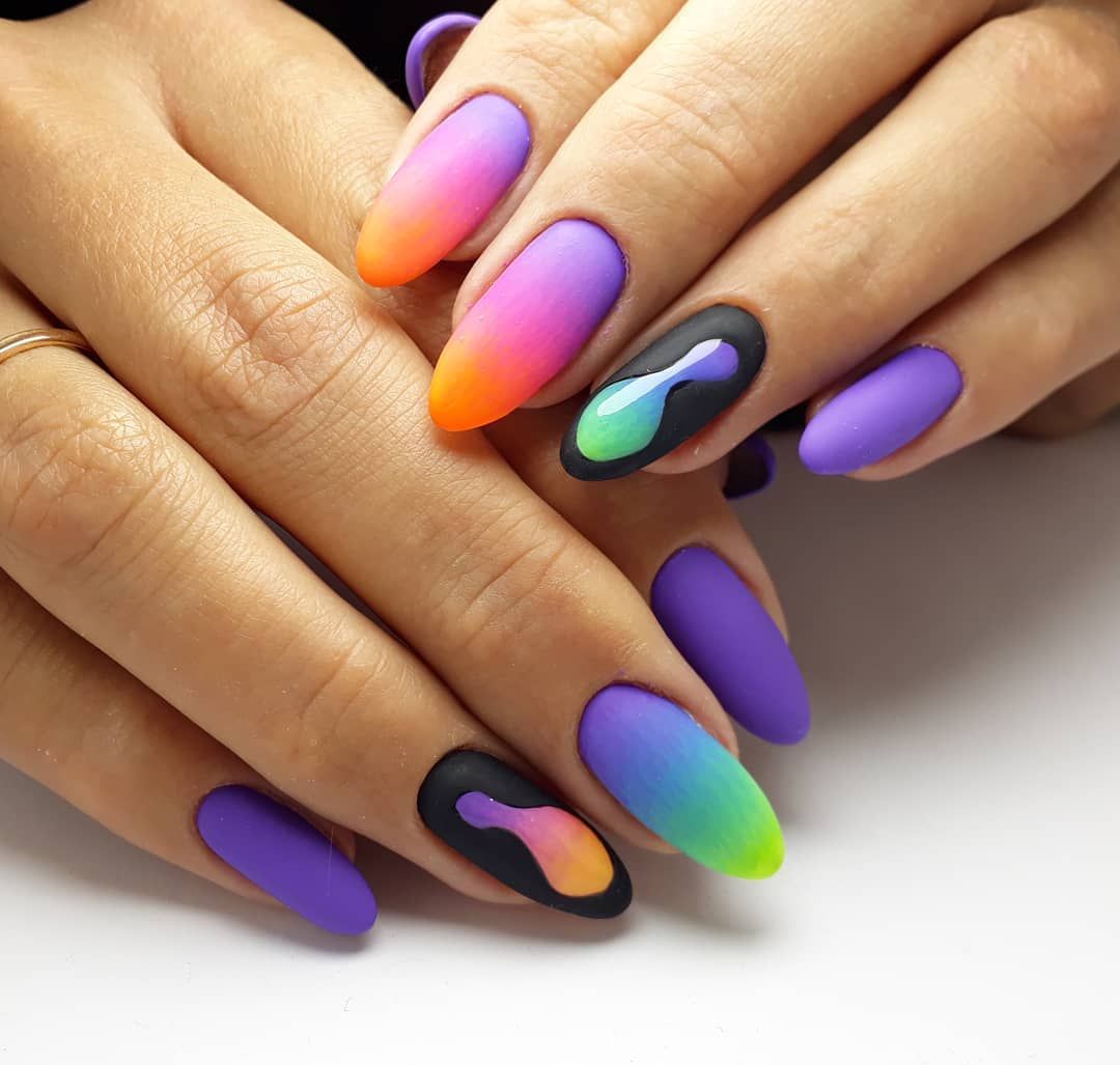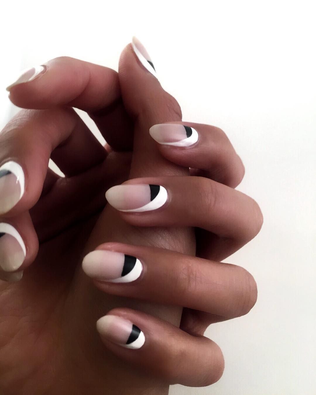 Ce style de conception de manucure n'est pas une nouveauté, mais il est néanmoins particulièrement populaire. Il est choisi par les amateurs d'expériences, ainsi que de minimalisme. Un petit espace non ombré qui reste en train d’appliquer le design est élégant et plutôt inhabituel. Par conséquent, soyez prêt à ce que les manucures soient considérées avec un intérêt particulier.