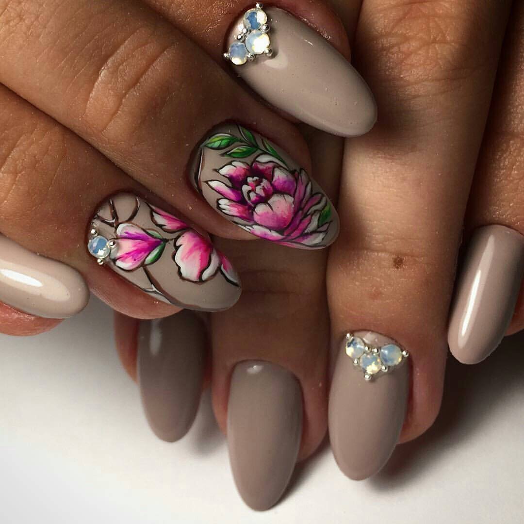 L’option la plus appropriée pour tous est peut-être une manucure avec un motif floral. Le fait est que ces sujets reflètent le mieux l'élégance, la tendresse et la légèreté de la fille. Mais en même temps, le style d’application et la palette de couleurs de la conception peuvent être très différents.