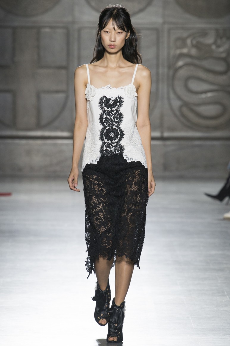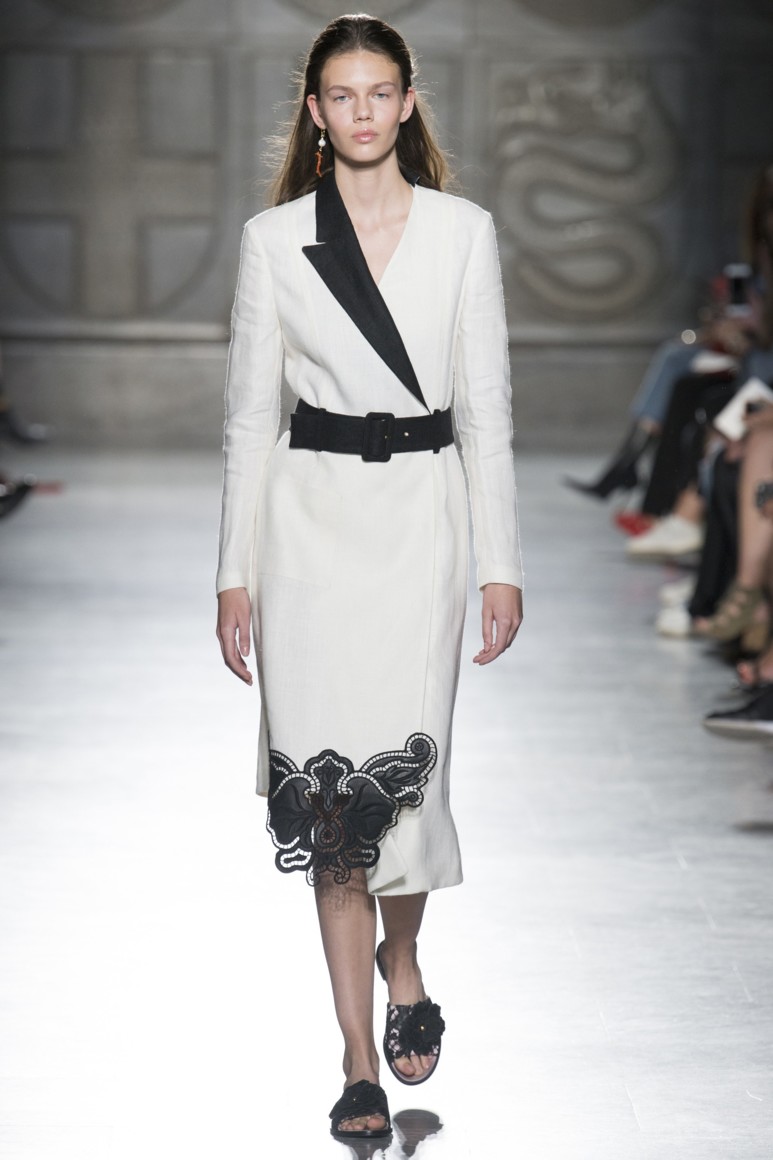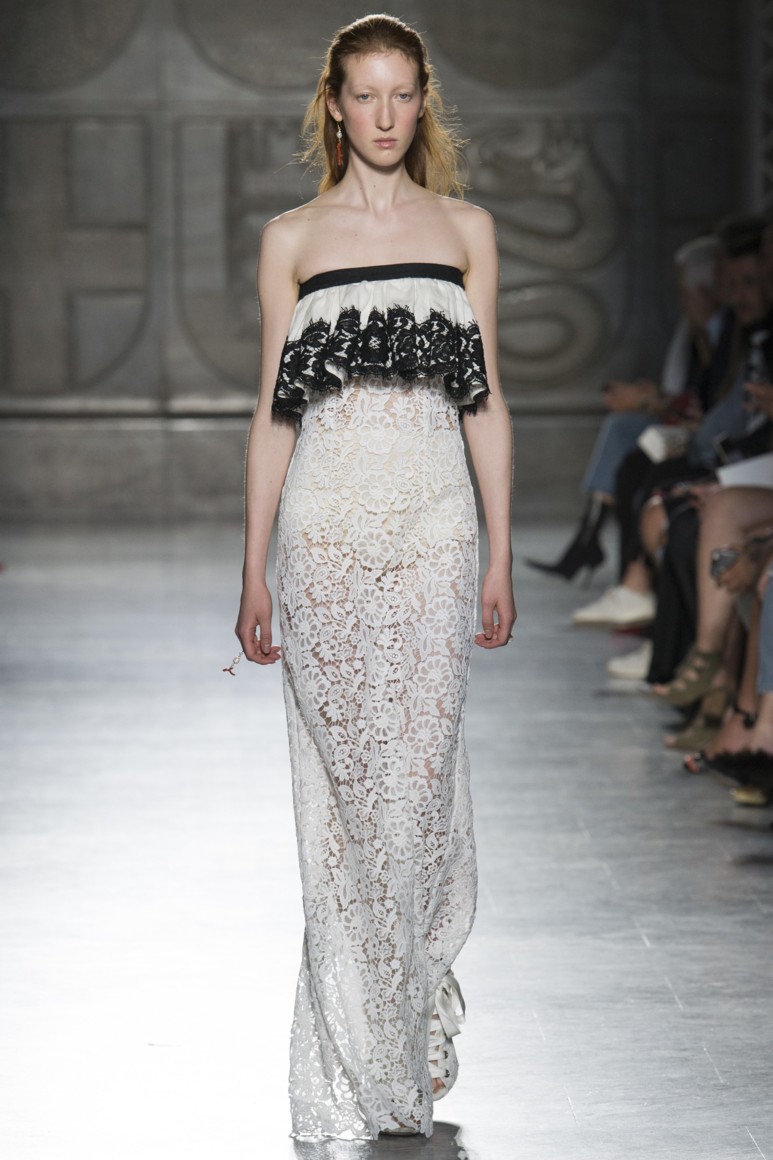 La combinaison noir et blanc prouve une fois de plus que les produits ont une apparence élégante. Ce sont les concepteurs de FAUSTO PUGLISI qui ont utilisé le noir et le blanc. Mais, pour lisser la perception classique, ils ont dilué les modèles avec la dentelle d'origine.