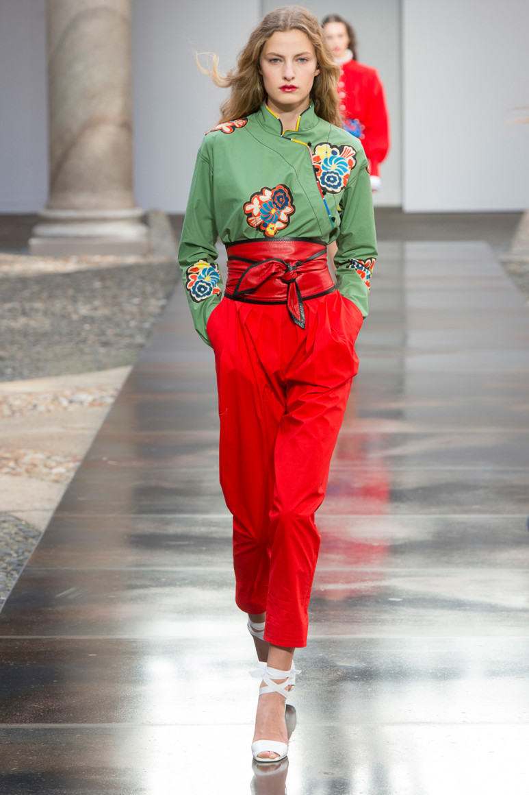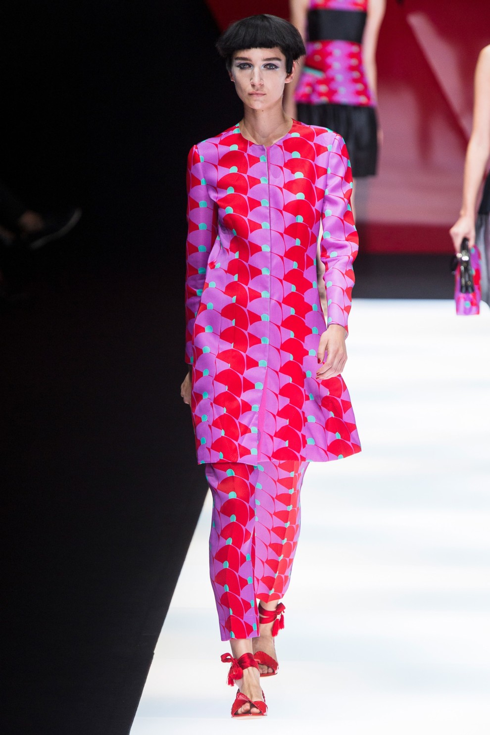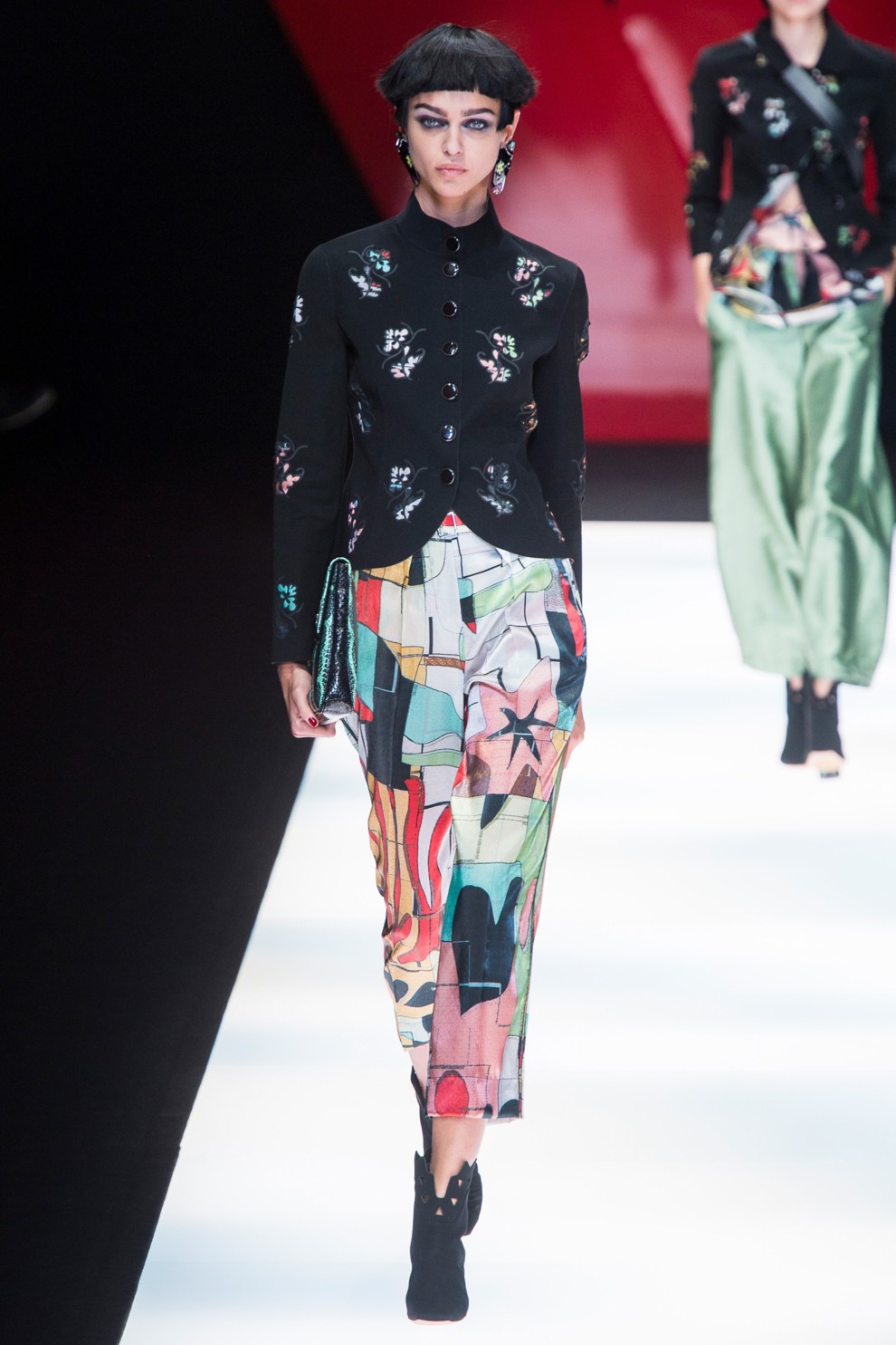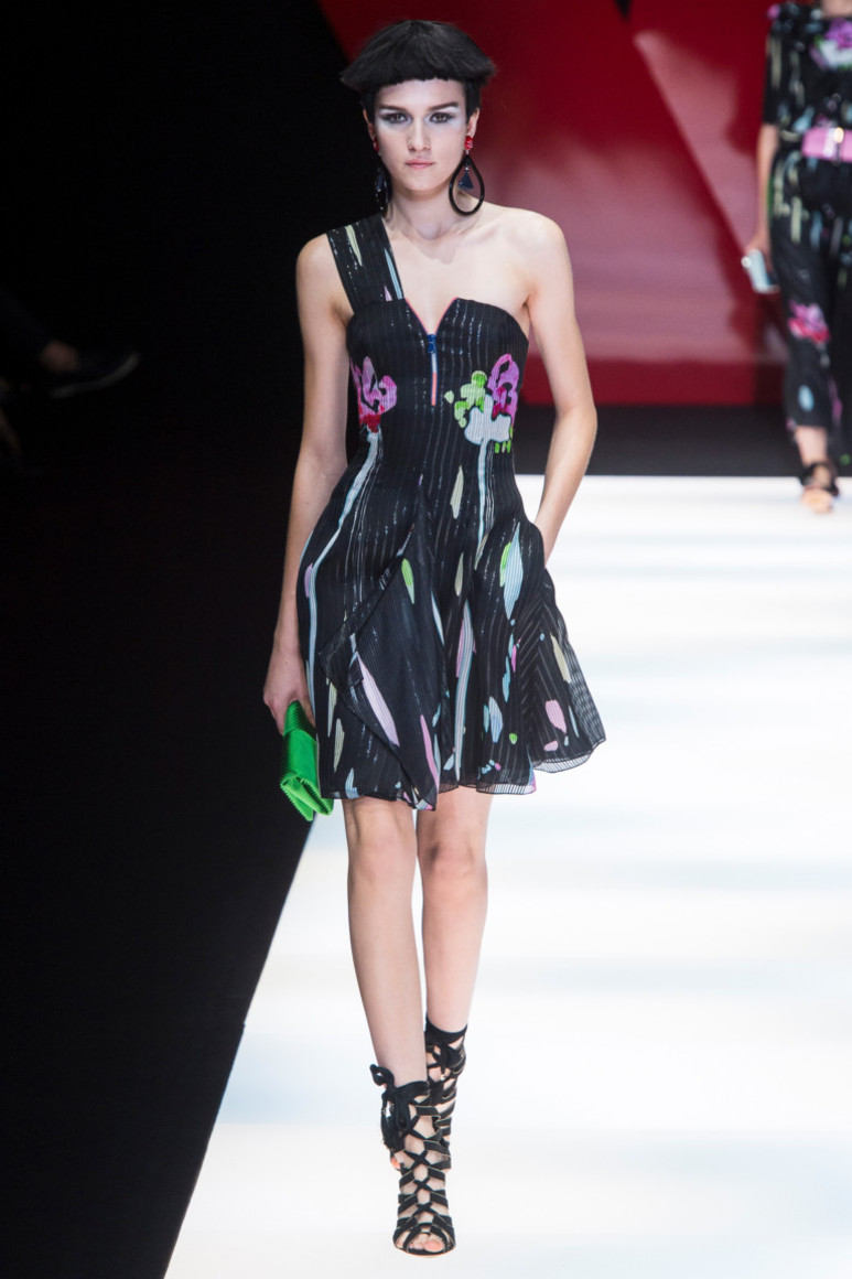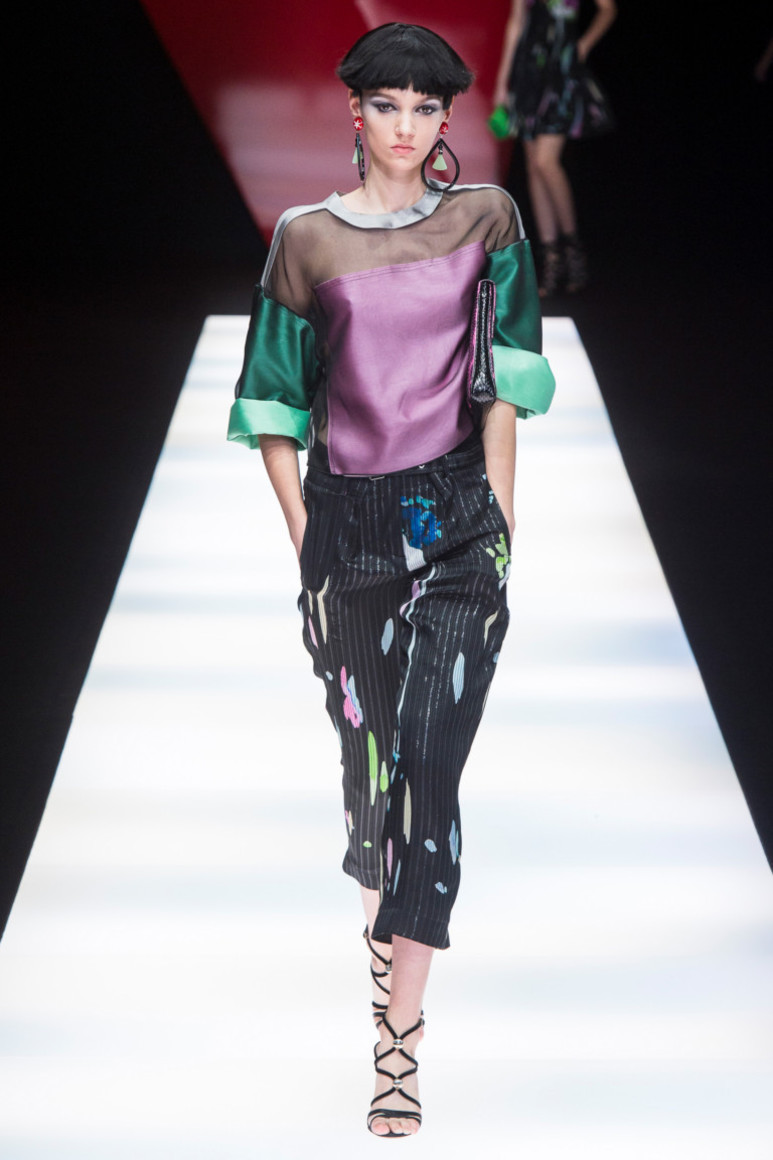 L'uniforme de la marque GIORGIO ARMANI a été transformé en robes de soirée chic lors de la Fashion Week de Milan. La collection a été unanimement reconnue comme la plus optimiste et la plus gaie. Que sont des vestes blanches et des pantalons accrocheurs de forme large, des vestes en cuir véritable avec un revêtement en maille et de grandes fleurs écarlates!