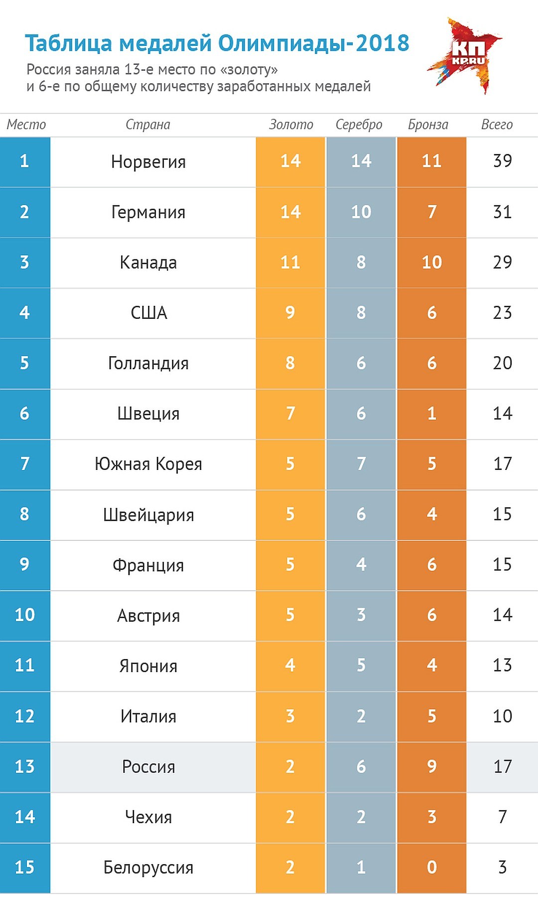Le 25 février, la clôture des XXIIIes Jeux Olympiques d’hiver a eu lieu à Pyeongchang. Cette année, un nombre record de récompenses ont été jouées - 102 sets, pour lesquels les athlètes se sont battus dans 15 disciplines. Parmi les médaillés figuraient des représentants de 30 États.