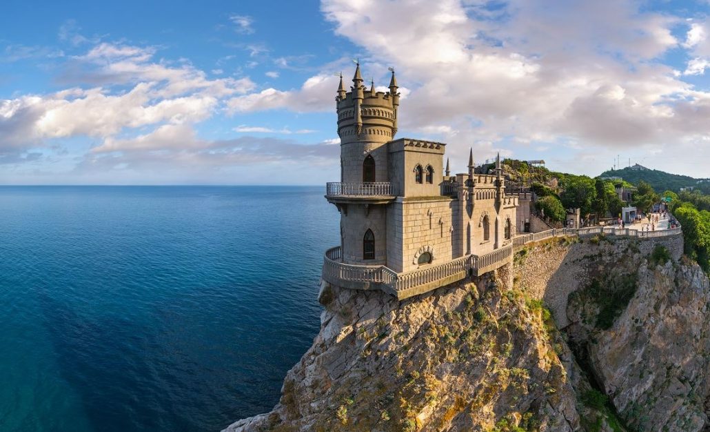 - Nid d'hirondelle. Sur une haute falaise d'environ 40 mètres de haut, située au-dessus de la mer, un château médiéval a été construit. Son architecture et son savoir-faire sont impressionnants.