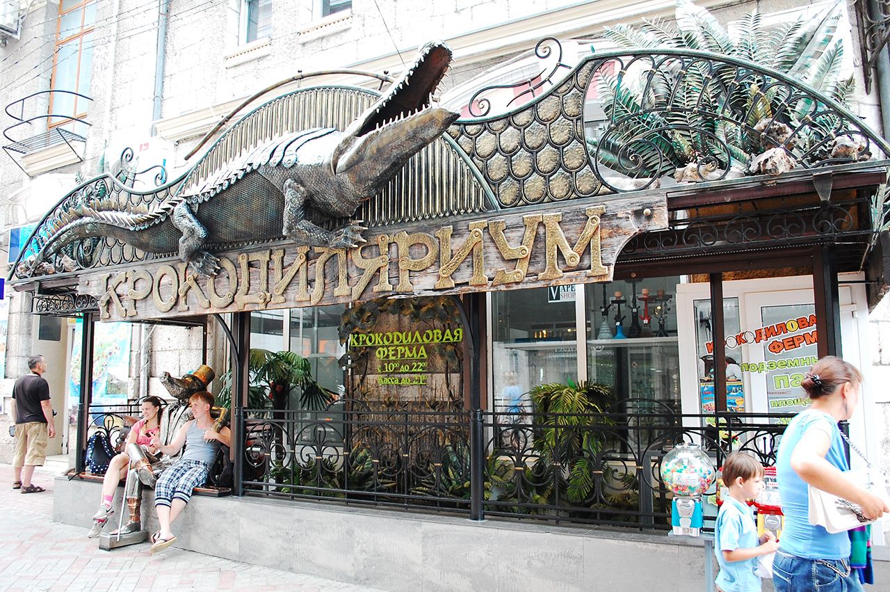 - Aquarium de crocodiles à Yalta. Voici une variété de reptiles du monde entier. Environ 100 crocodiles de différentes espèces et tailles vivent ici. Il y a aussi beaucoup de tortues, iguanes, serpents, crabes et autres habitants. Un billet pour enfants coûte 300 roubles, un adulte 400 roubles.