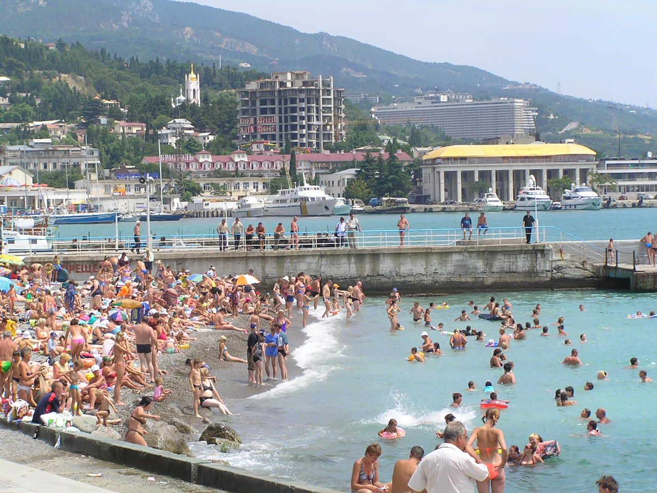 - Un grand nombre de vacanciers sur les plages de Yalta.