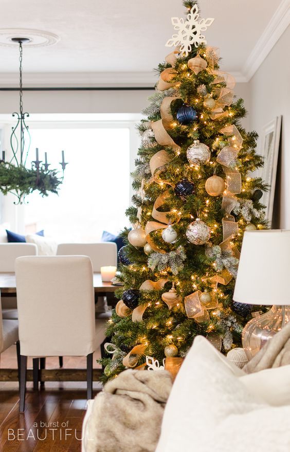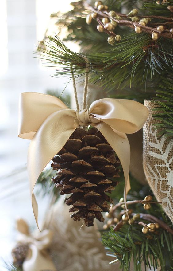 Très souvent, de beaux rubans sont utilisés à la place des guirlandes ou en plus de celles-ci. Ils sont les plus populaires en rouge ou blanc. Il est vraiment magnifique, nous vous recommandons d'essayer de les ajouter à l'arbre.