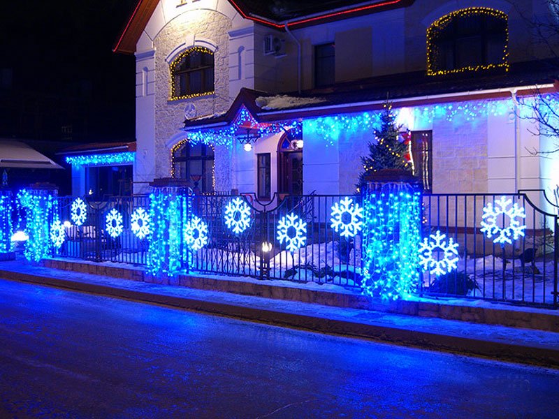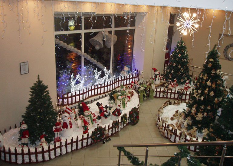 La première chose que vous devez organiser à l’école est la façade du bâtiment. C'est la partie que les étudiants voient en premier et qui vient en classe tous les jours. En approchant des portes, les enfants comprendront et sentiront qu'un monde de vacances fabuleux et magique règne à l'école. Ce n’est pas la même chose. Des concours sont organisés chaque année sur la meilleure décoration de la façade d’un établissement d’enseignement. Nous vous suggérons d’adopter une approche créative pour décorer la cour de l’école et d’utiliser la technique créative de traitement au pochoir. L'essence de cette technique consiste à tricoter des vêtements de couleurs vives pour les objets urbains et les arbres. Vous pouvez également installer à l'entrée de l'école divers bouquets de designers réalisés dans le thème du Nouvel An.
